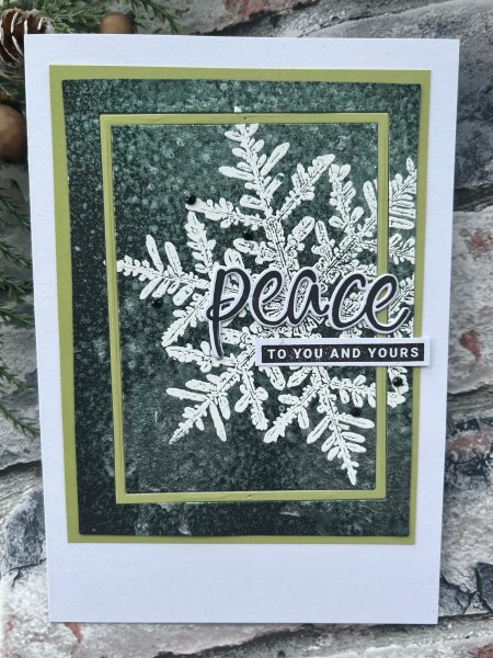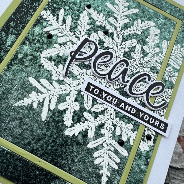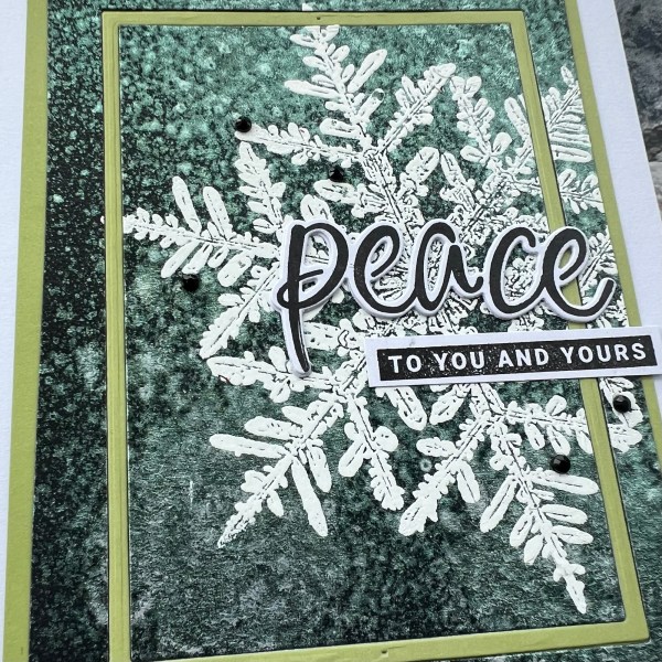 On this one I spritzed the white spray onto the black and let it dry – and when it did the mica have a definite green hue – so that was the colour I went with for the accent colour.