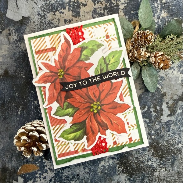 I put quite a lot of effort into the background but then covered most of it up with the Simple Stories Big Bits poinsettia – don’t get me wrong – I love it – but it amuses me when I go to lengths to create a fun and textural background and cover most of it! 😂