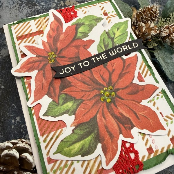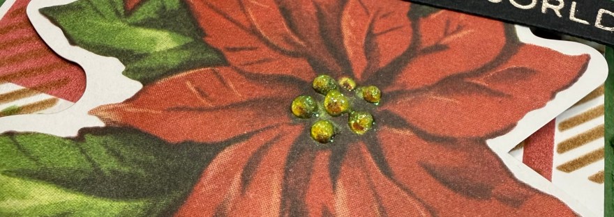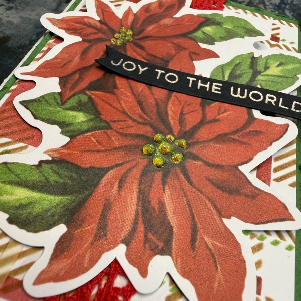 I kept changing my mind on the focal point but decided eventually on the poinsettia and to add to them I added glitter glue to the flower centres.