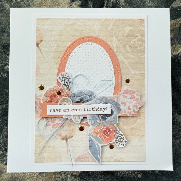 Hello! For today’s design team card for ATSM our theme is any occasion so I decided to just use up papers that were on a pile on my desk leftover from a scrapbooking project and see where it took me!