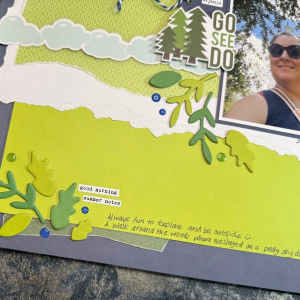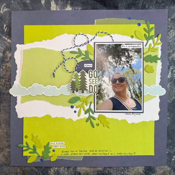 The page had to be about a Mum (hence the pic of my Mum), to include stickers (this included lots and lots) and then was about the Outdoors!
