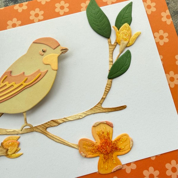 I am back with another sample I made for Kingston Crafts using the fun spring mechanism. This time I decided to go to town with the die cut elements and then pop the bird up on the movement spring.