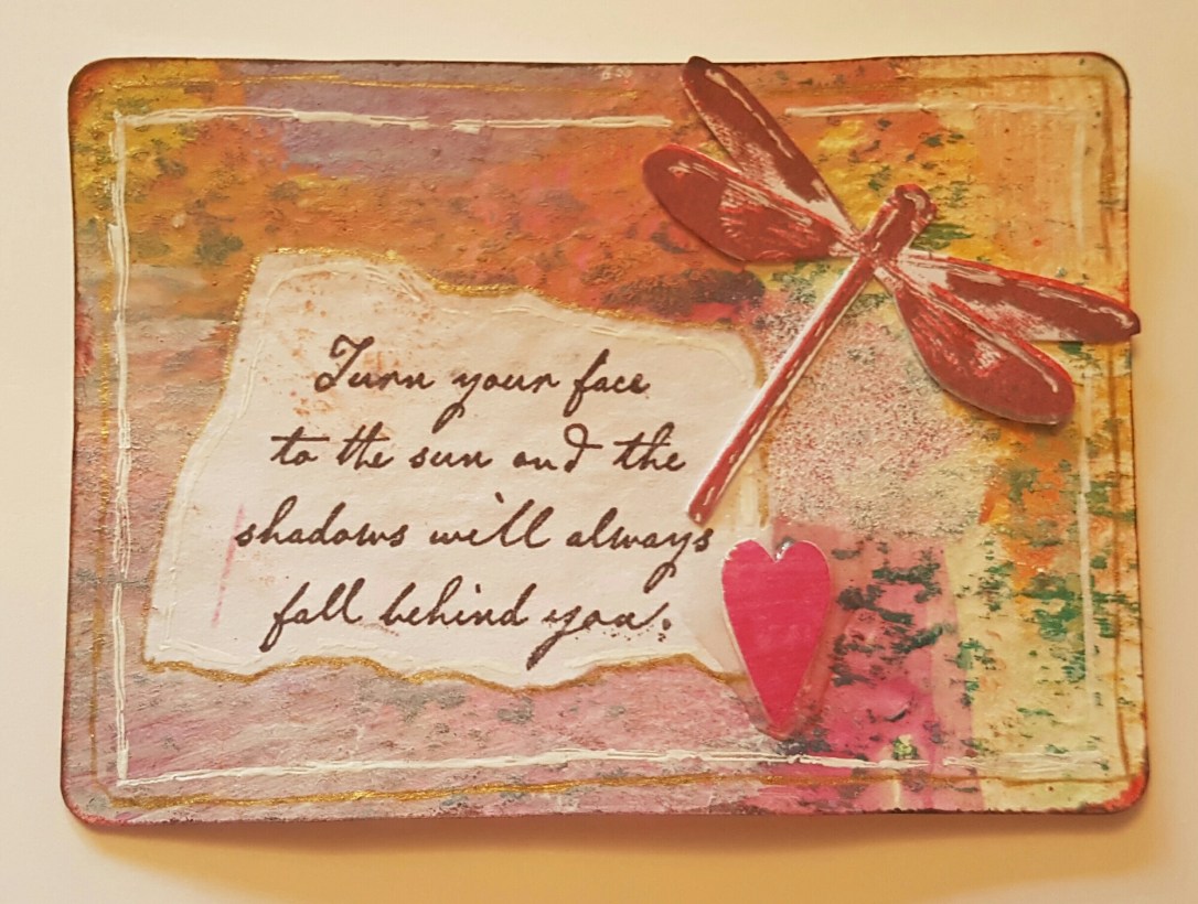 Week 4 was Dragonfly… the feature came from Awesomely Artistic and this was added to a pretty pastel background card to which I added the quote from Darcy’s stamps.