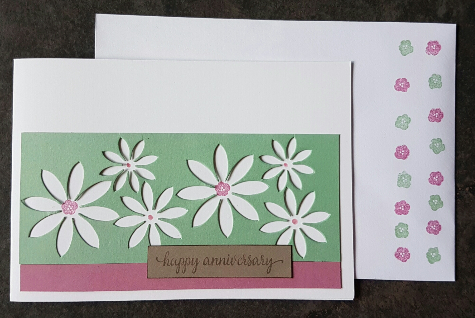 Helen had the matching framelits available for us to cut all the stamped images and Daisy flowers out. They did speed up the process a lot and I wouldn’t have wanted to fussy cut all the flowers out but I still am not a fan of framelits so I will have to use the good old fashioned scissors next time I use this set.