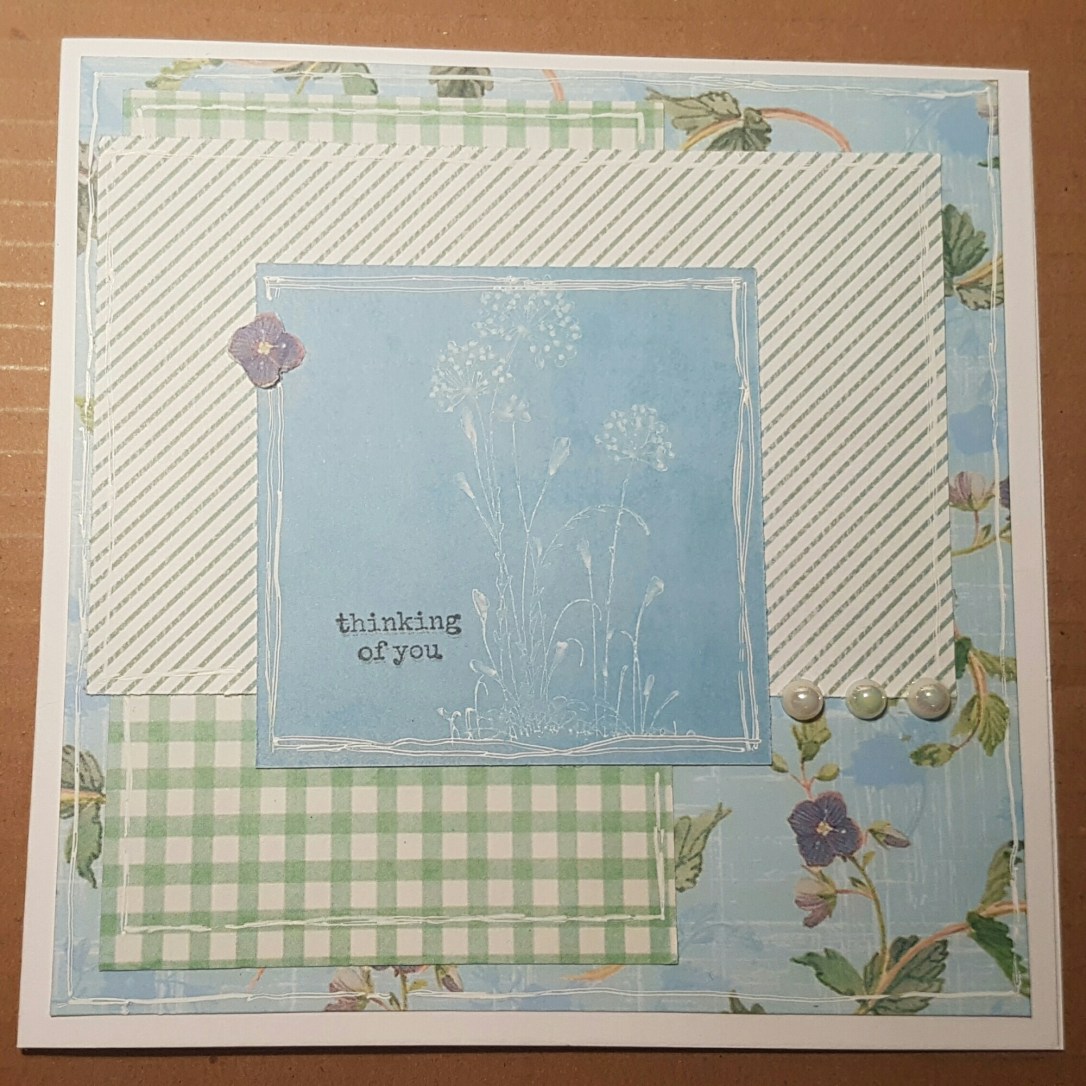 Wow didn’t January just fly by? I was caught on the hop and only just got this card finished last night for the challenge over at Craftyhazelnuts patterned paper challenge blog… where the only rule is to use patterned paper. Well I certainly did that!