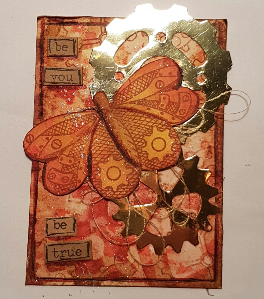 1. Just watched the video …LOVED it! Thank you so much for sharing. Need me that stamp defo and love the diecut cogs …… superb ATC!