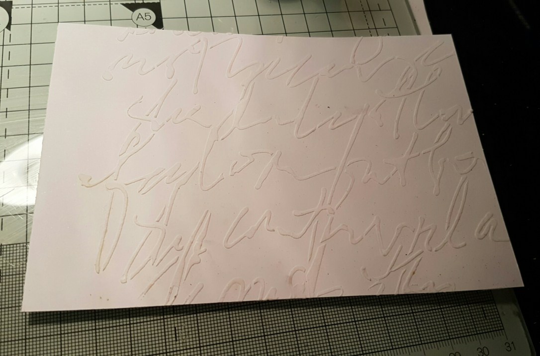 I started with modelling paste through a Donna Downey script stencil and then let it dry.