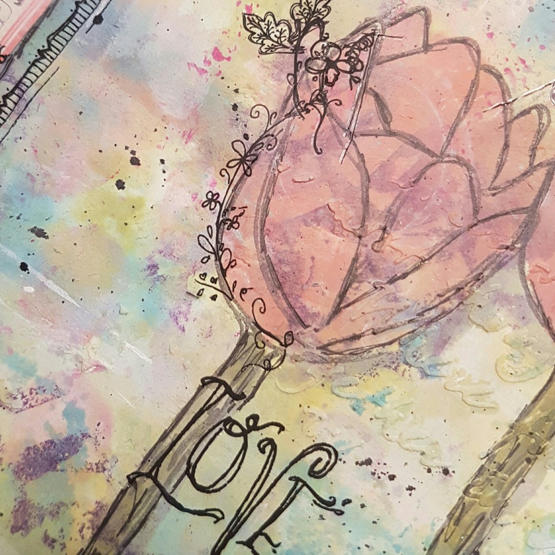I have more distress oxide fun to share today. This is a journal page I made in response to the theme of spring and Holland. It is the closest I get to a tulip!