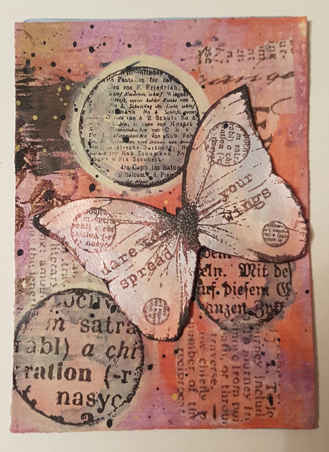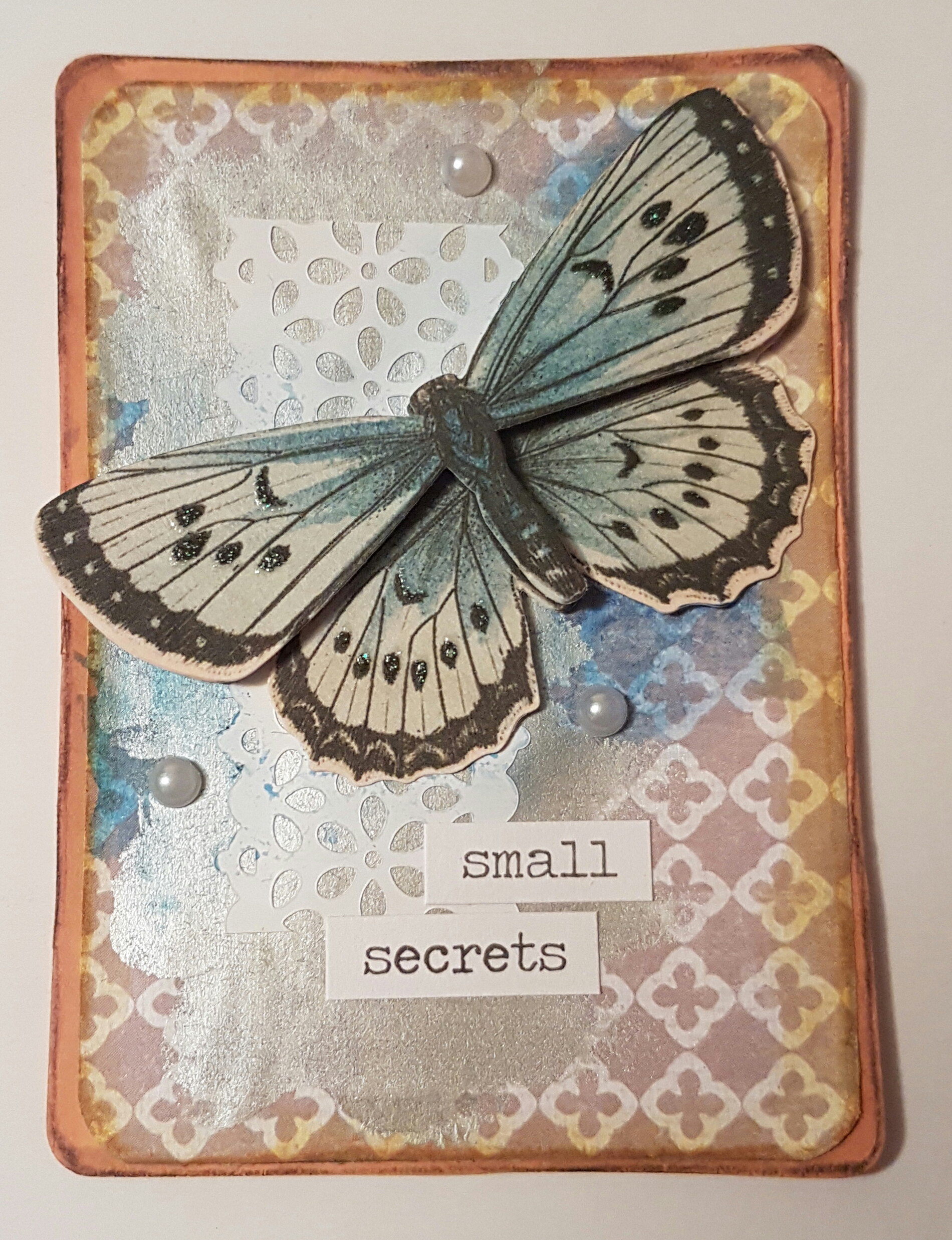 A gorgeous butterfly embellishment I received in a swap with a few layers underneath.