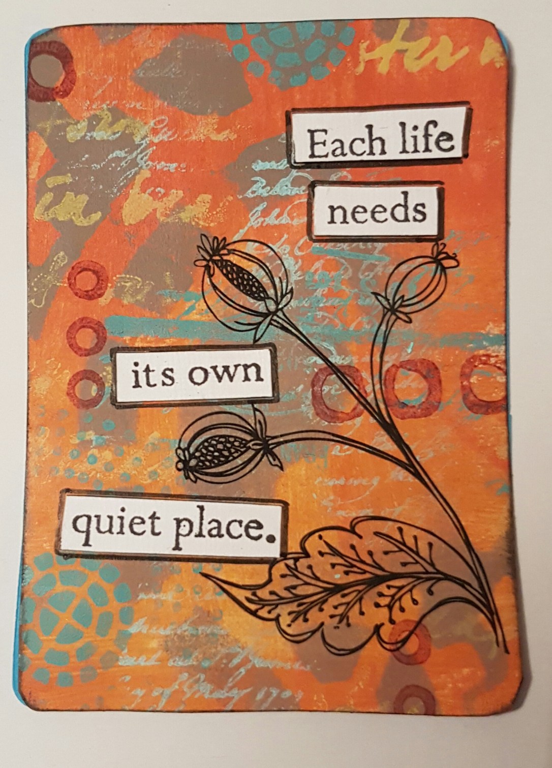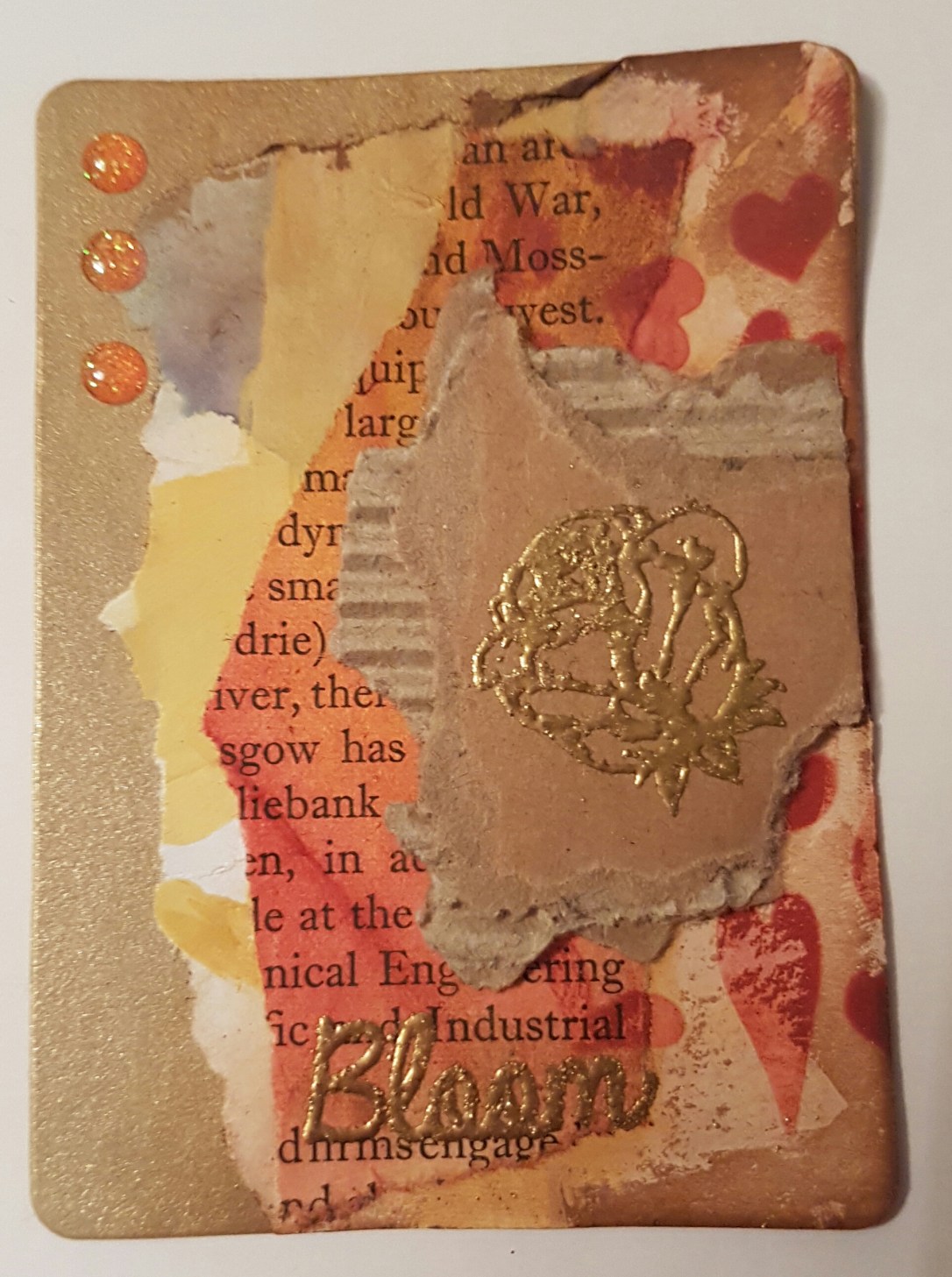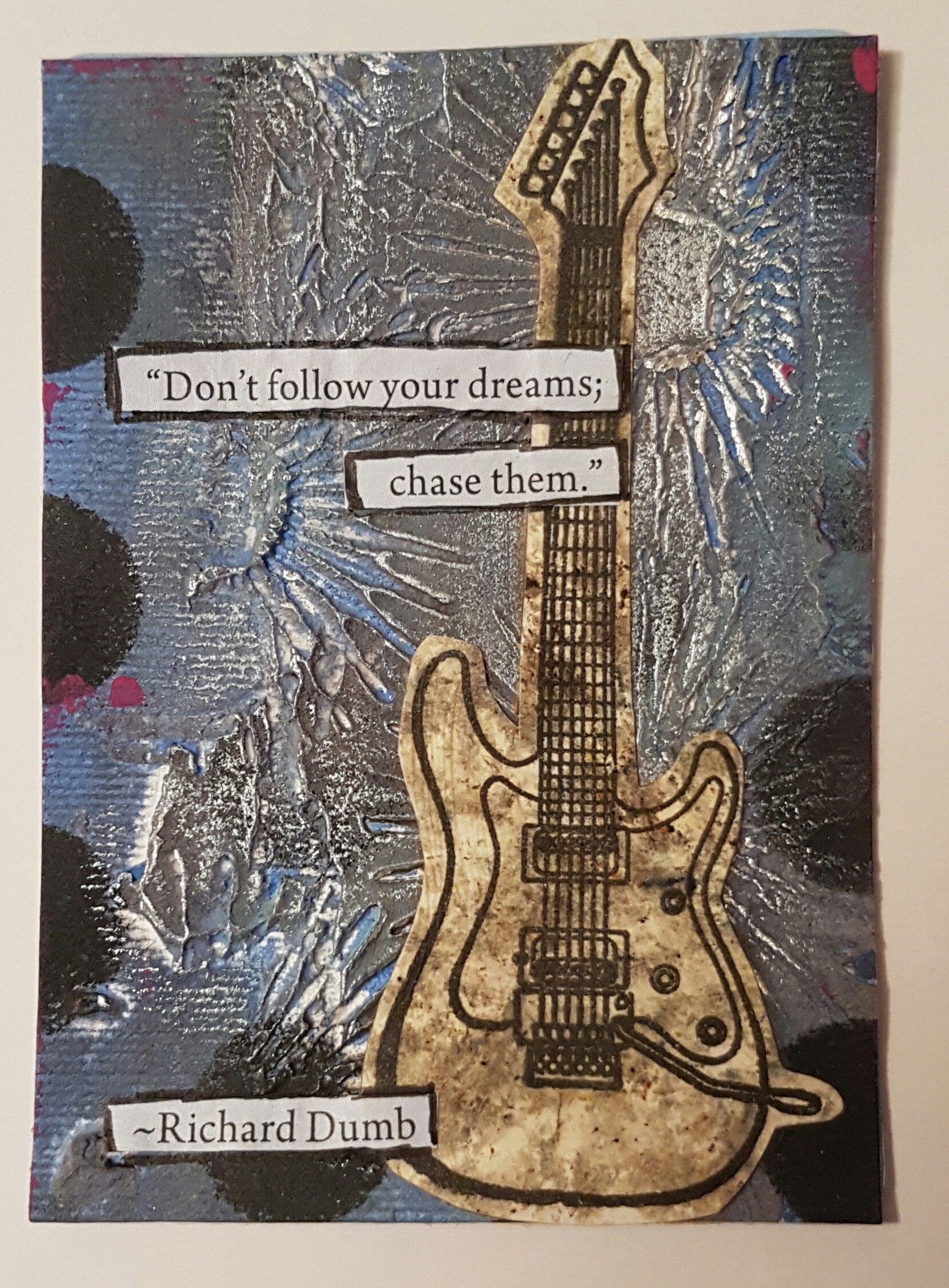Mish mash of backgrounds and techniques finished with heat embossing.