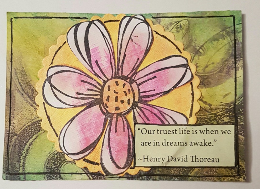 A fun flower on a Gelli print background.