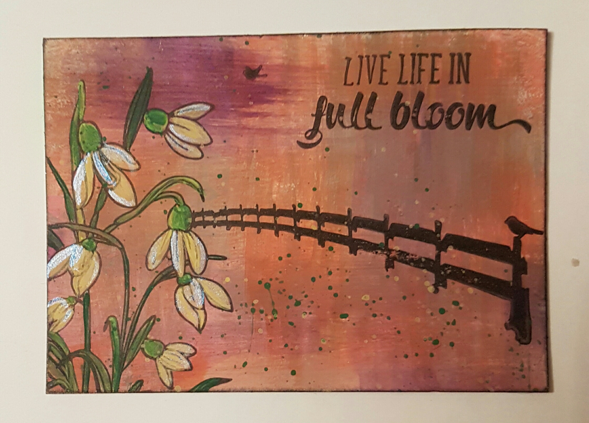 Painty background, stamping and some opal magic paint highlights.