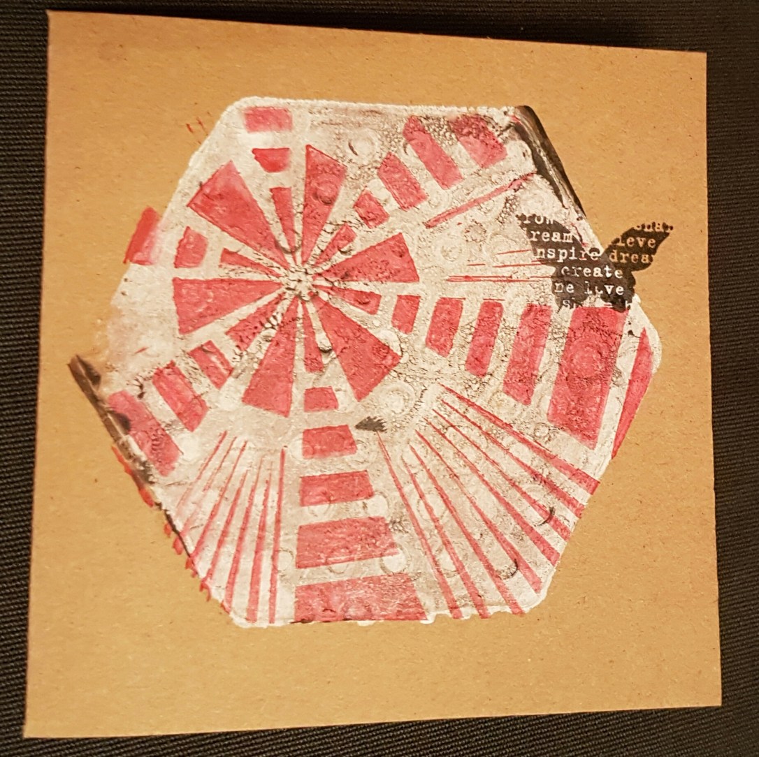 Then I also made two small note cards. These were done using the small hexagon Gelli plate and paint. I love these small 3×3 plates and the cute Geometric shapes.