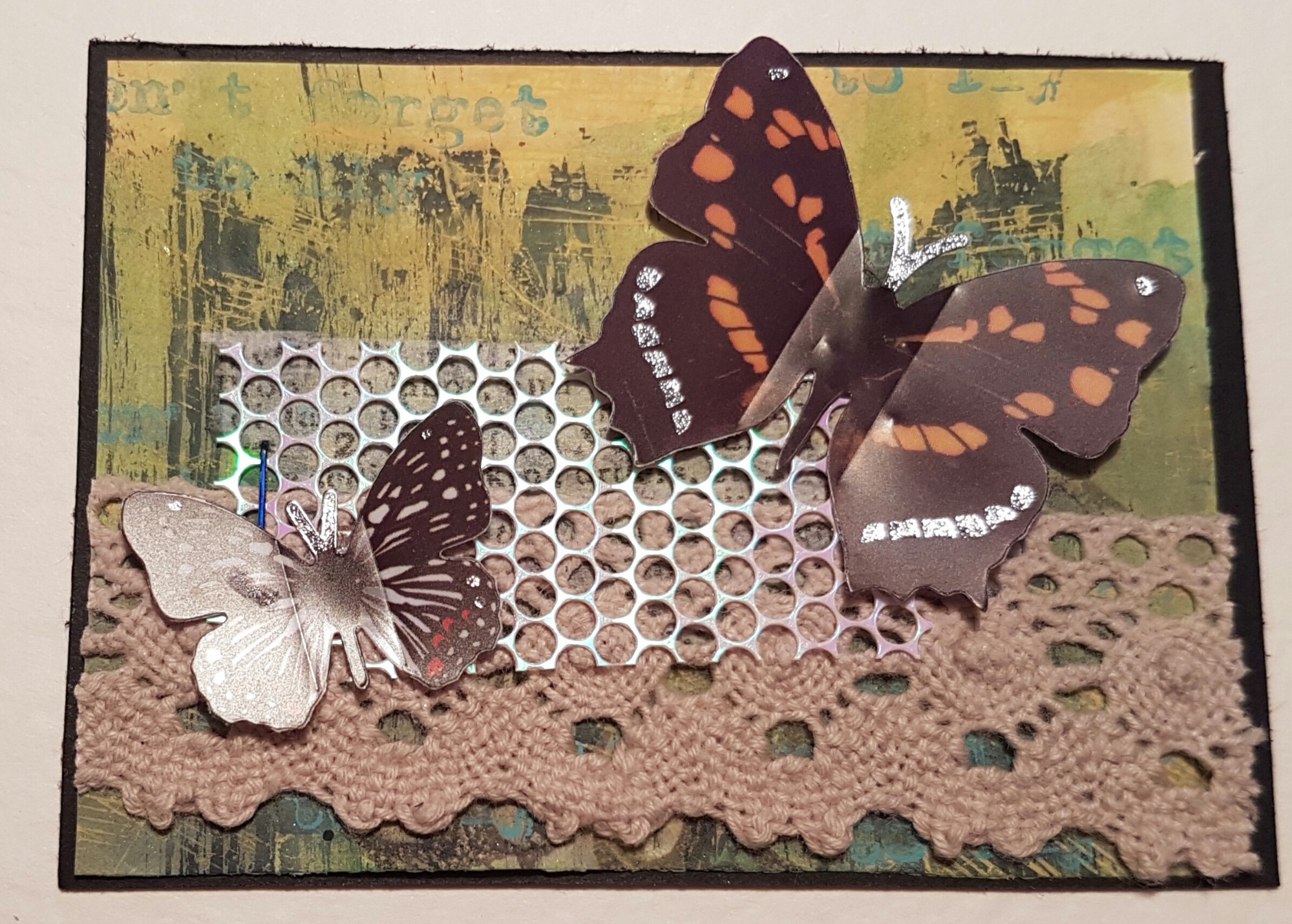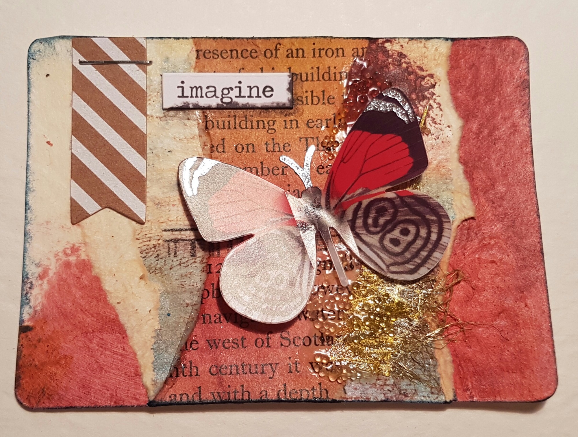 This is a painted background and then some bits and pieces from the desk … pretty butterflies!