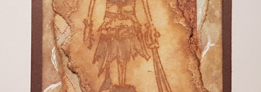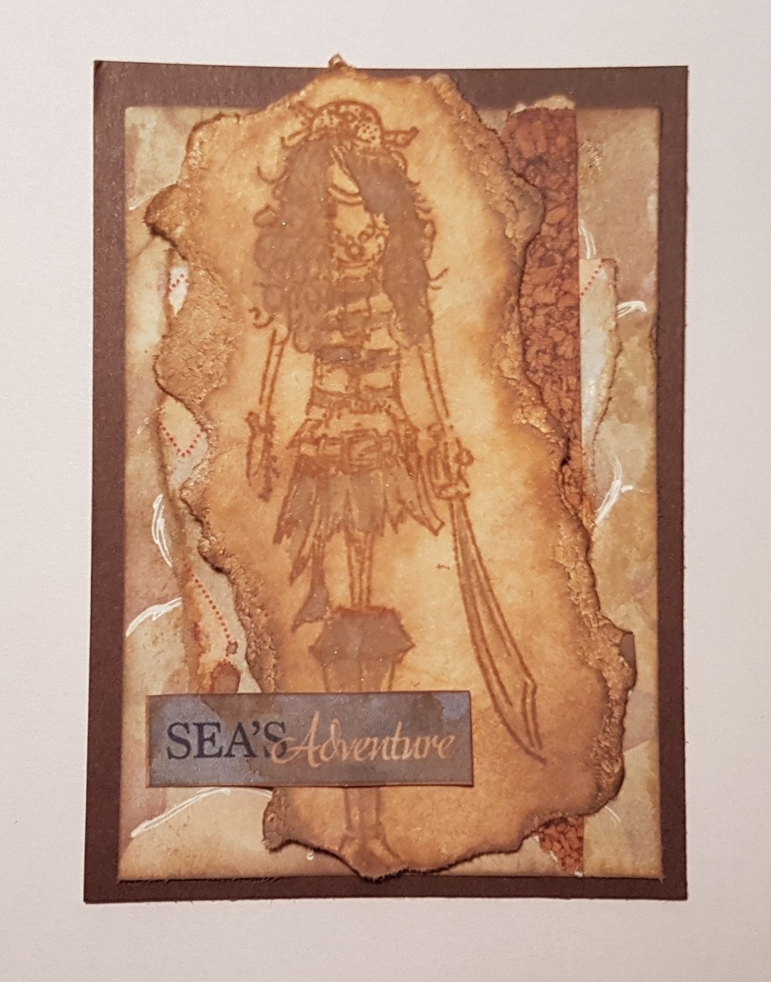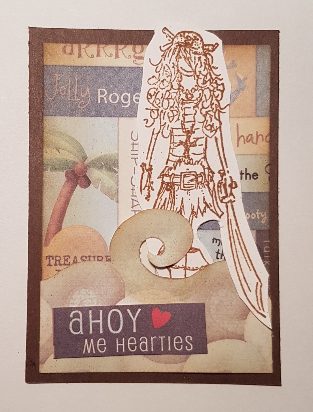 On Monday I shared a card I made with a pirate theme… I decided to then make a couple of ATCs from the left over papers and two contrasting styles. I also had the video running for this!