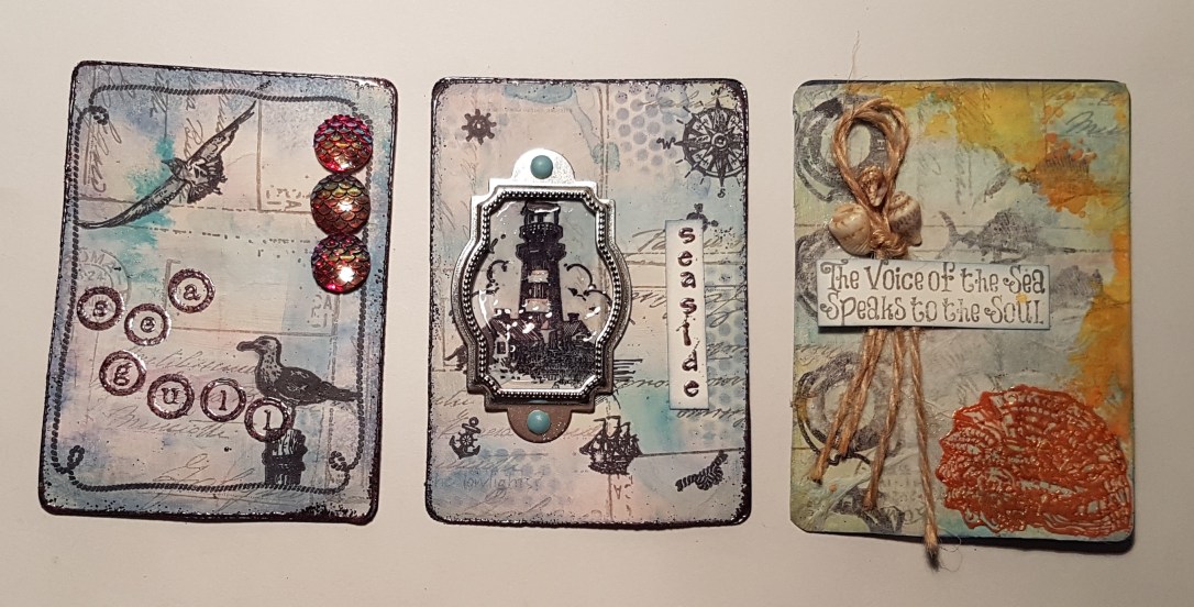 Lindsay Mason organises an ATC swap every month and I always try to join in… the theme for April was Seaside.