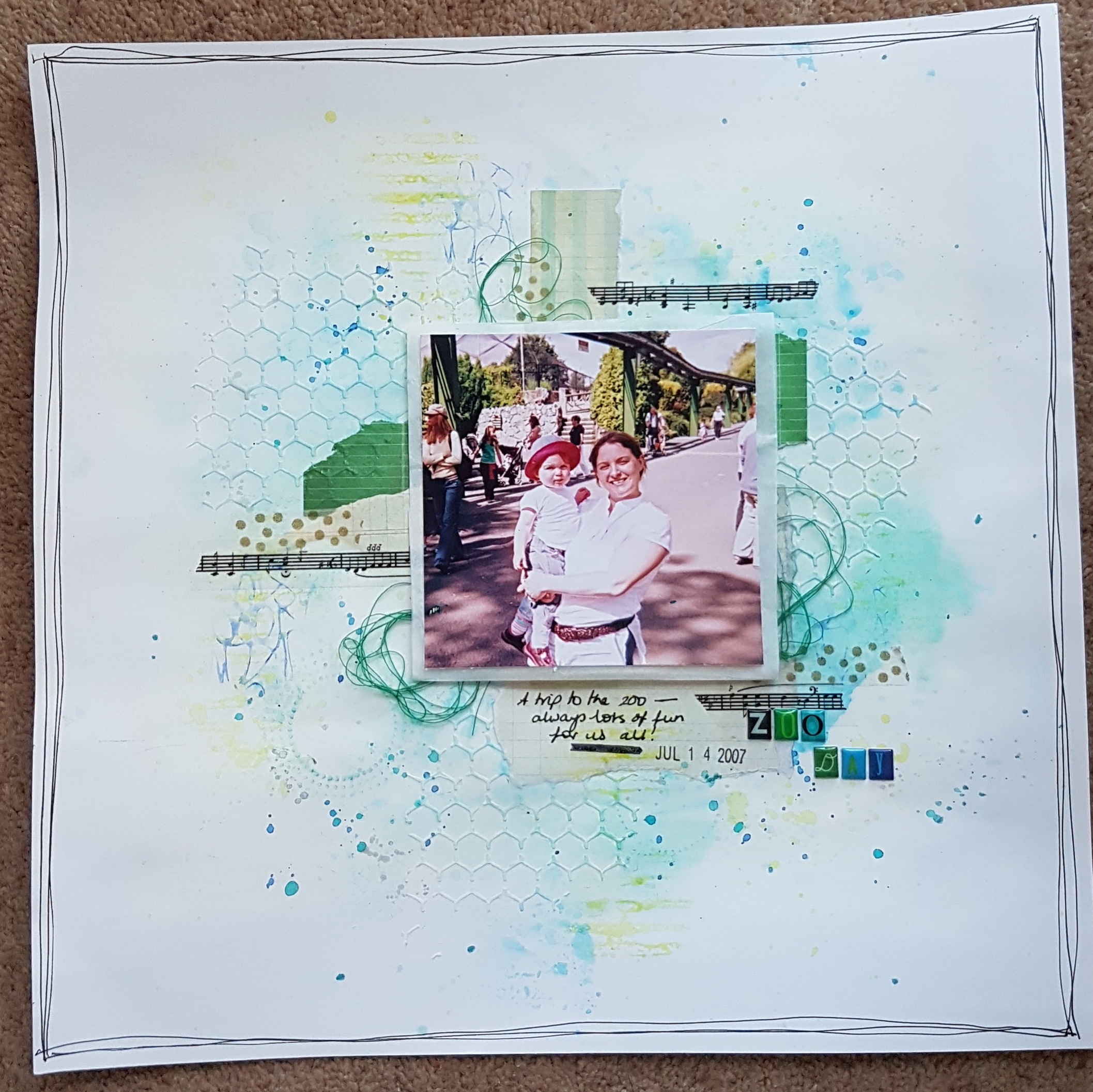 Last week’s class I started a scrapbook page… well I’ve finished it!