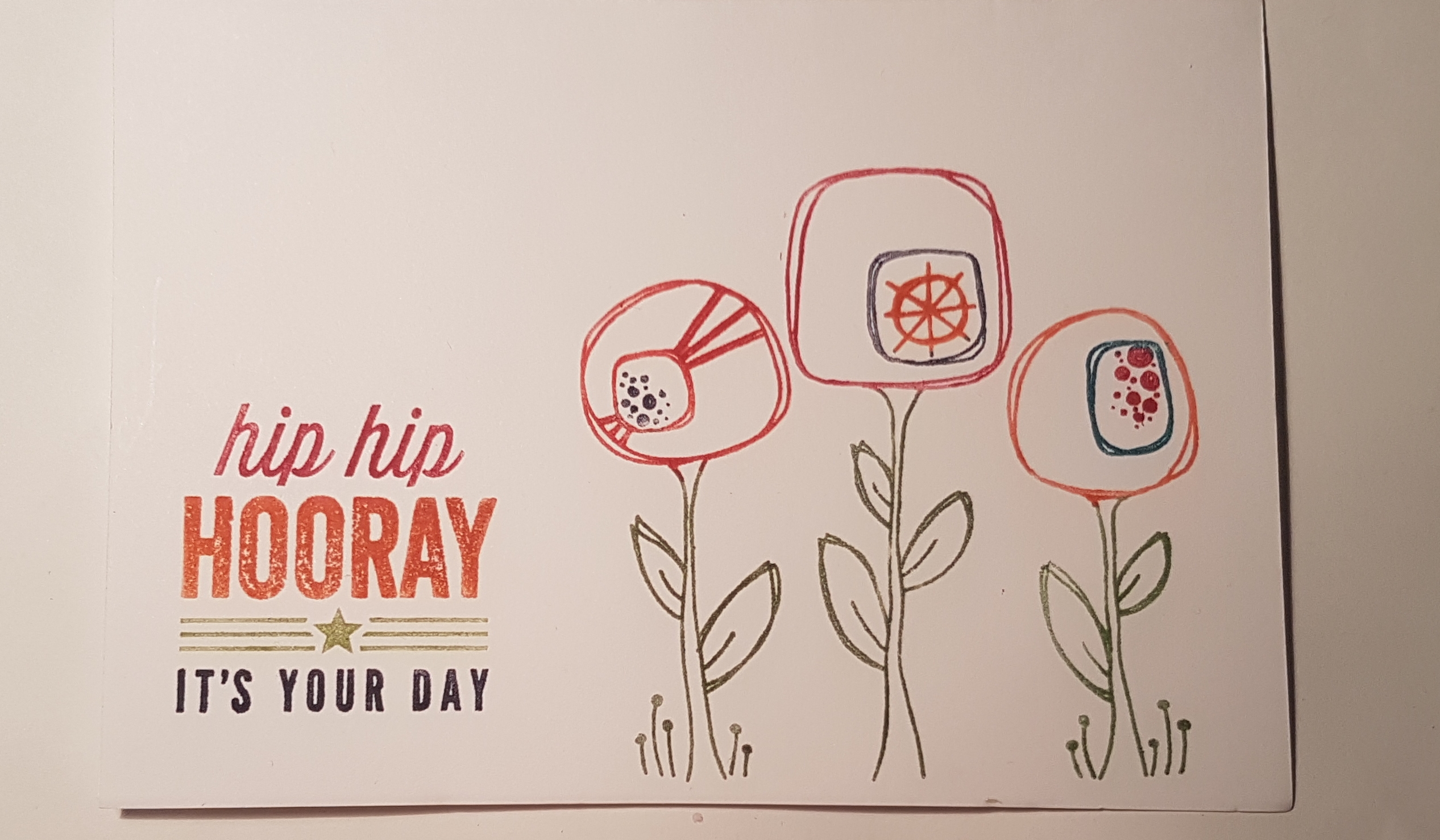 Finally the card I made colouring the stamp with markers. I love the multi coloured stamping.