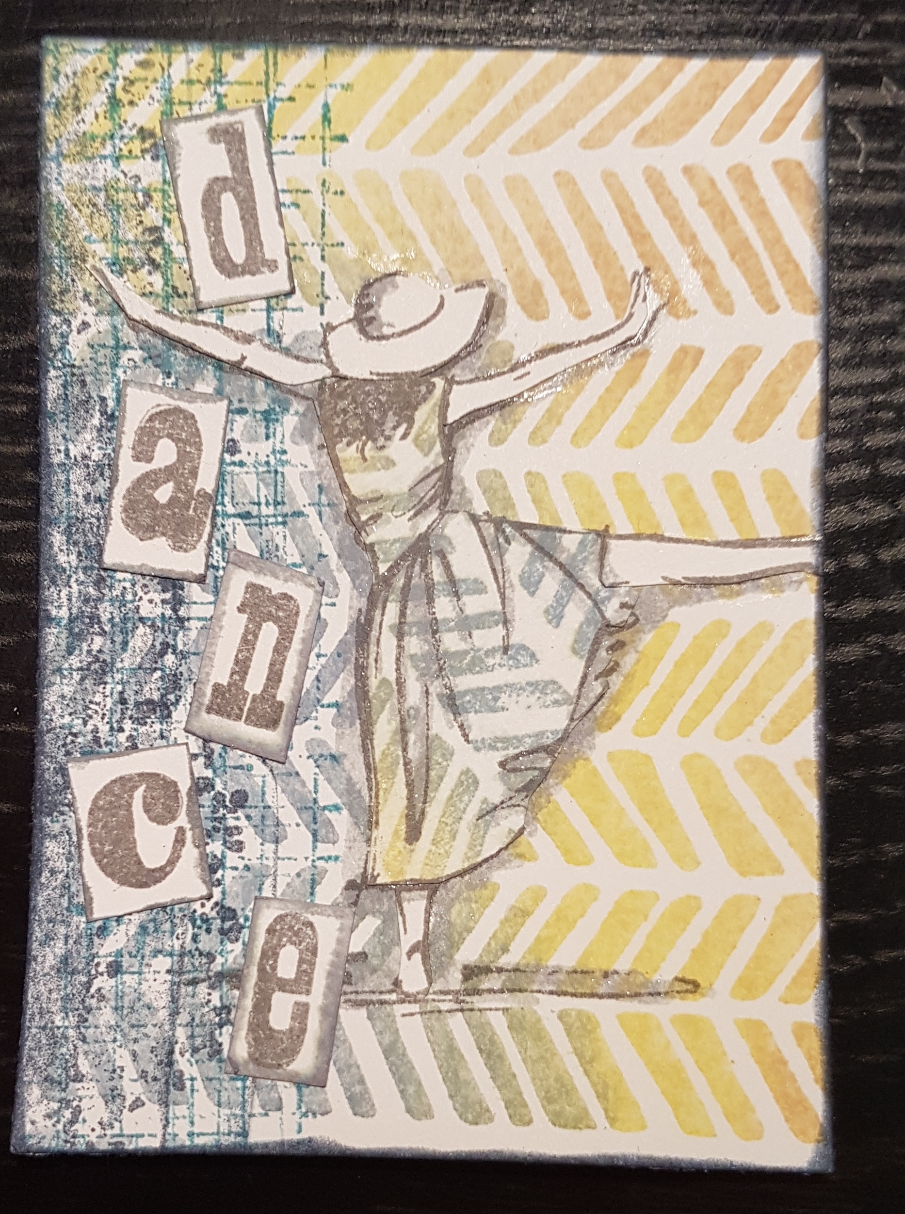 Next is the one I created the multicoloured stamping in the background with the platform.