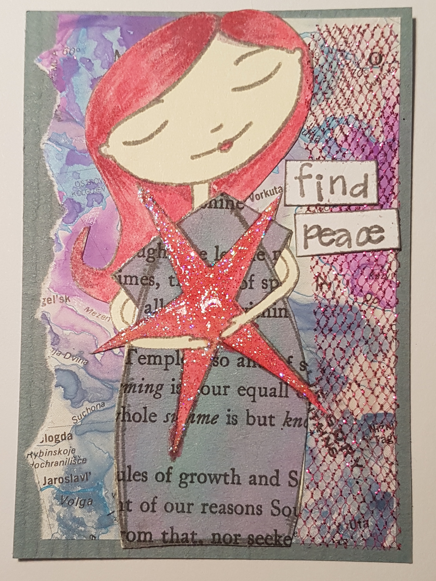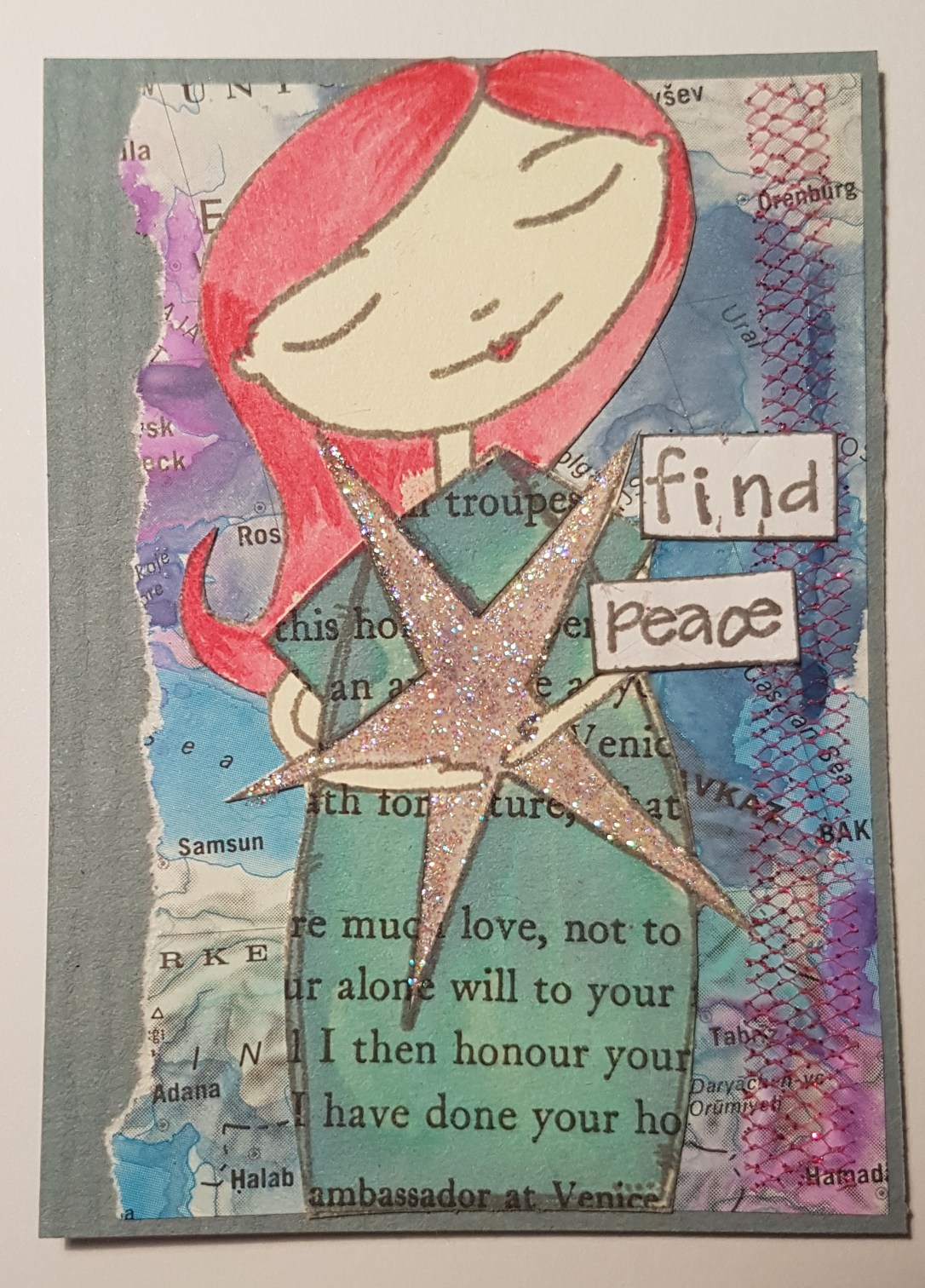 I used a new stamp and then used book print to paper piece the dress. I also added colour using inks and distress oxides.