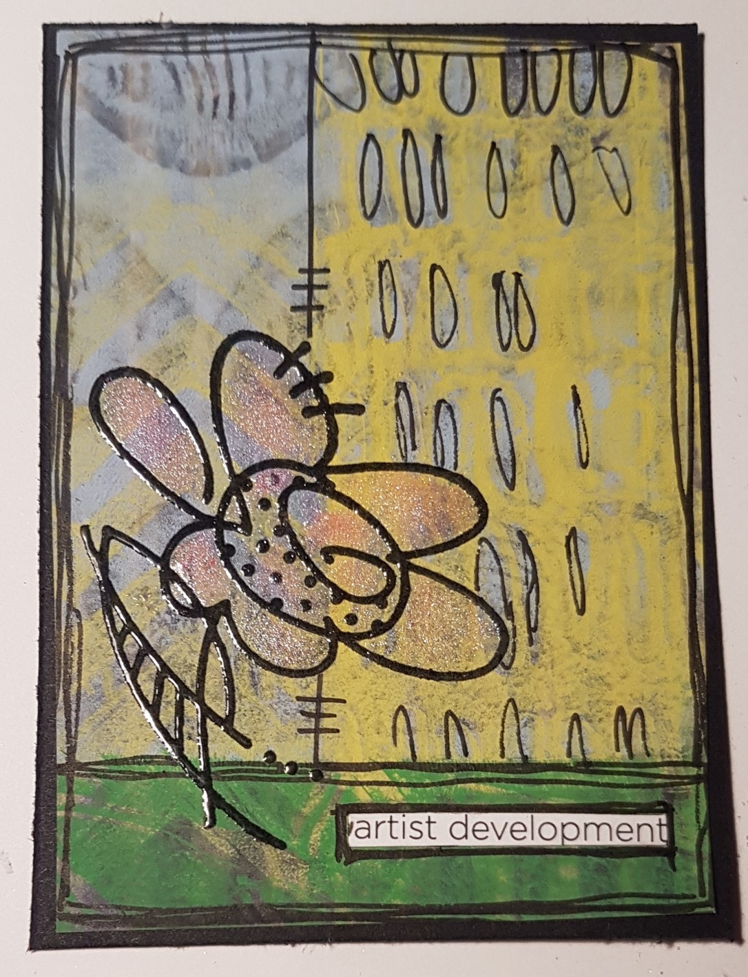 I then added doodles to the background and then mica to the flower.