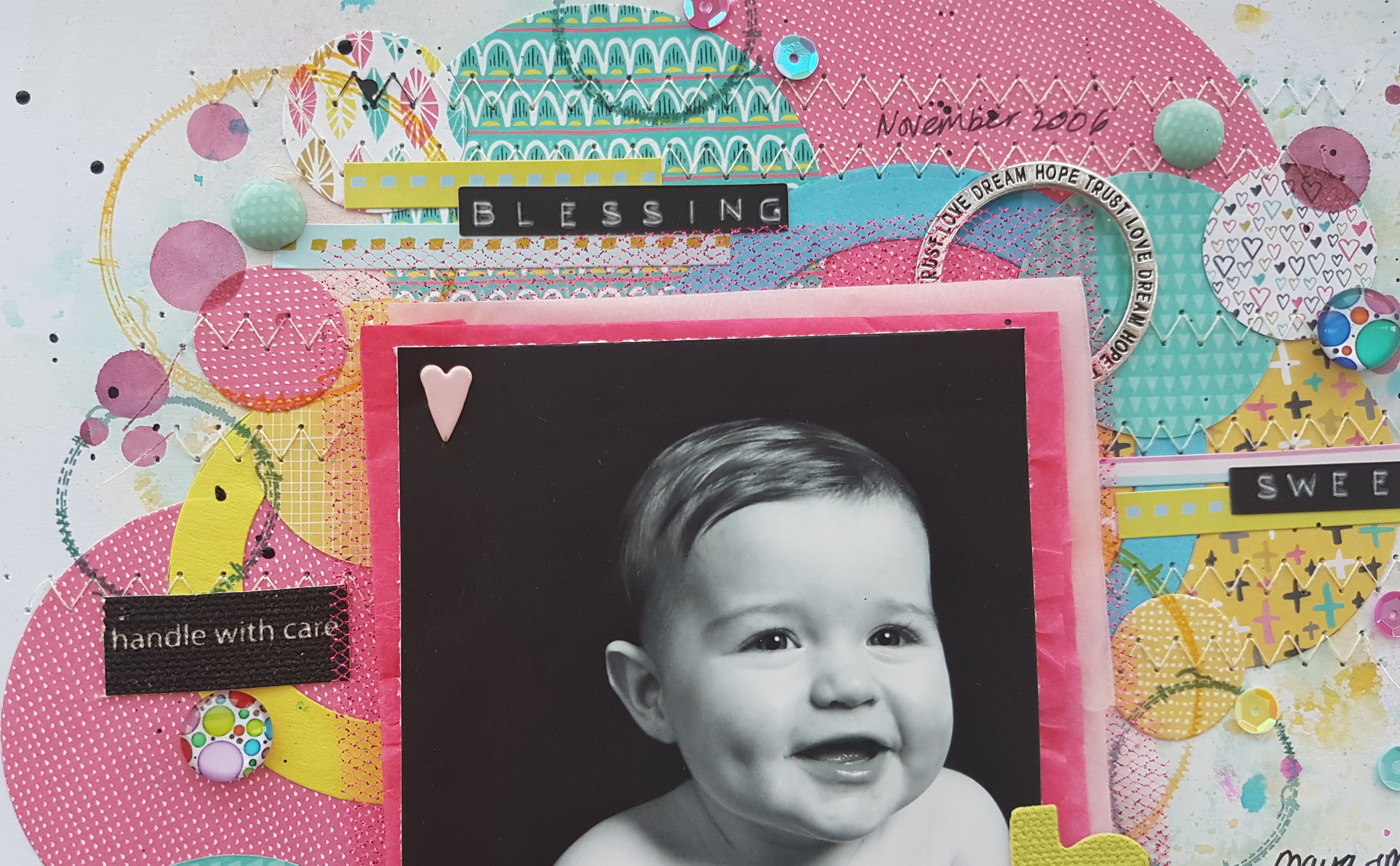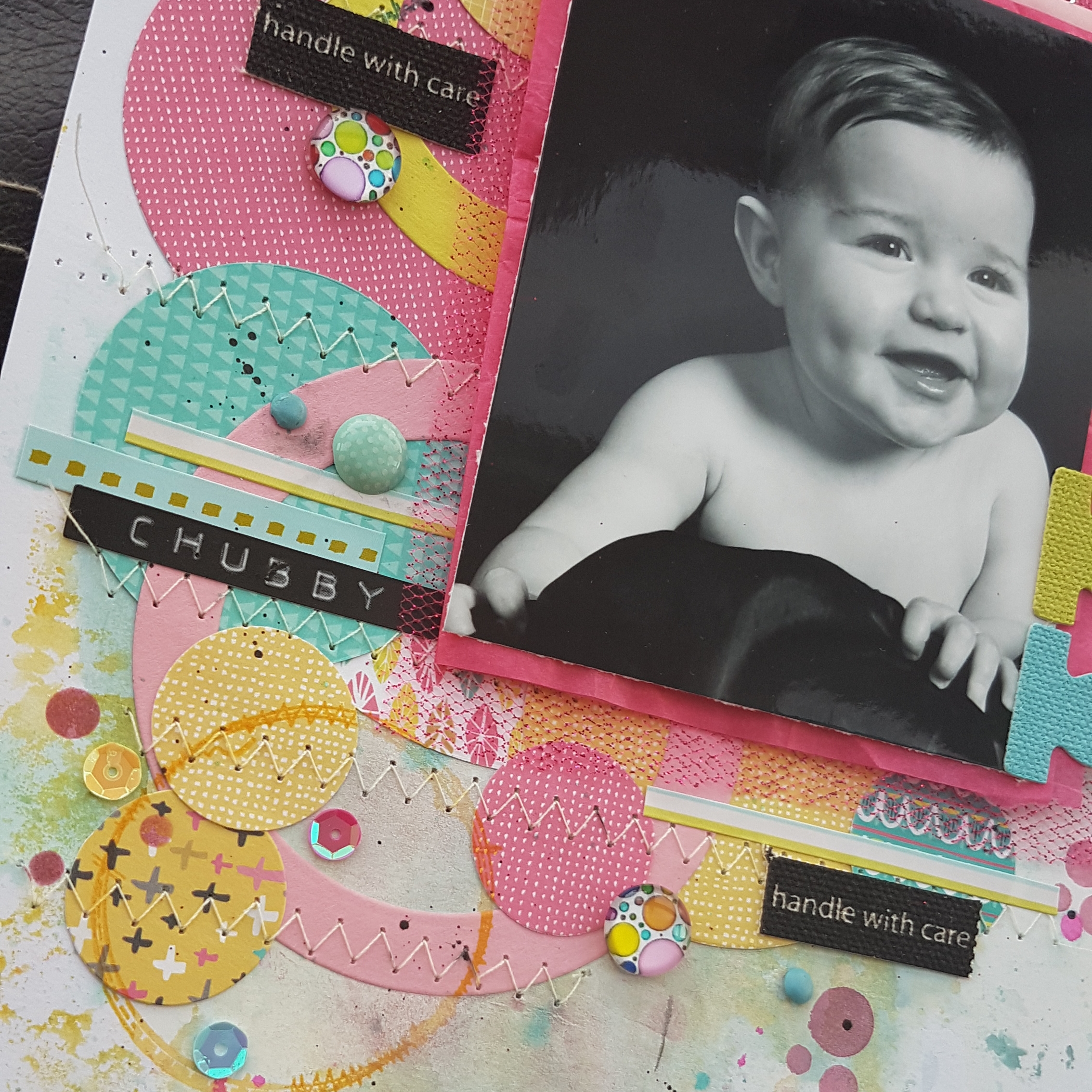 I had a play with the supplies from the Artful Days goodie boxes… check out the video I filmed. Loved making this layout. Such fun… and of course my gorgeous chubby girl!