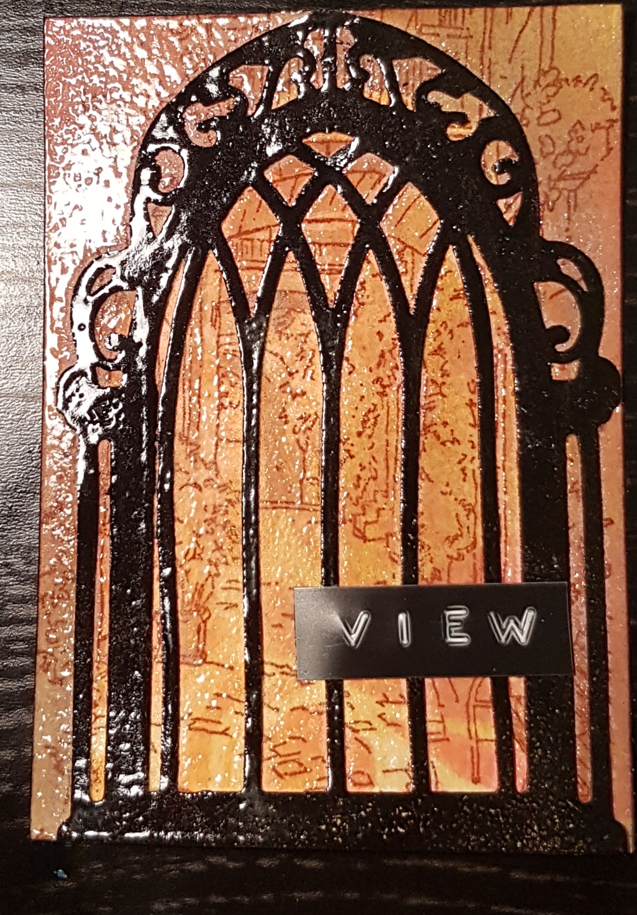 So I started with a die cut window from my stash that I painted with black gesso.