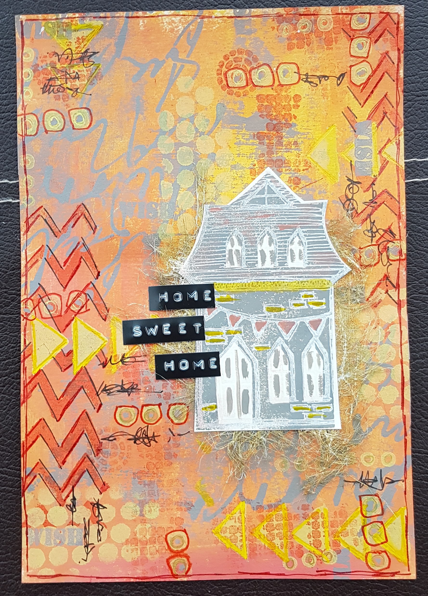 I love paper piecing the Clare Lloyd girl. And the colours for this page really spoke to me. The reverse side I have a different feel but with similar colours with the fun Lin Brown house stamp.