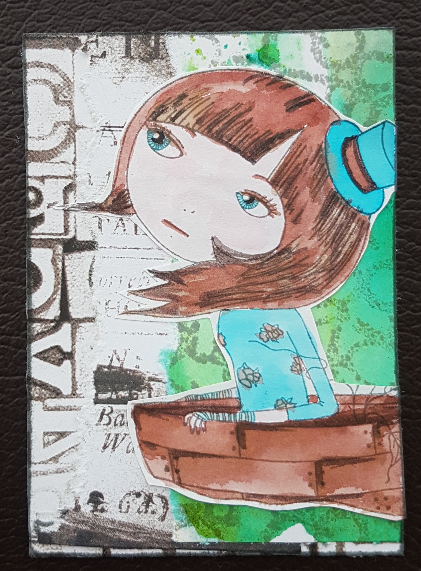 Another ATC made using a brushos background as the starting point. And another Santoro stamp.