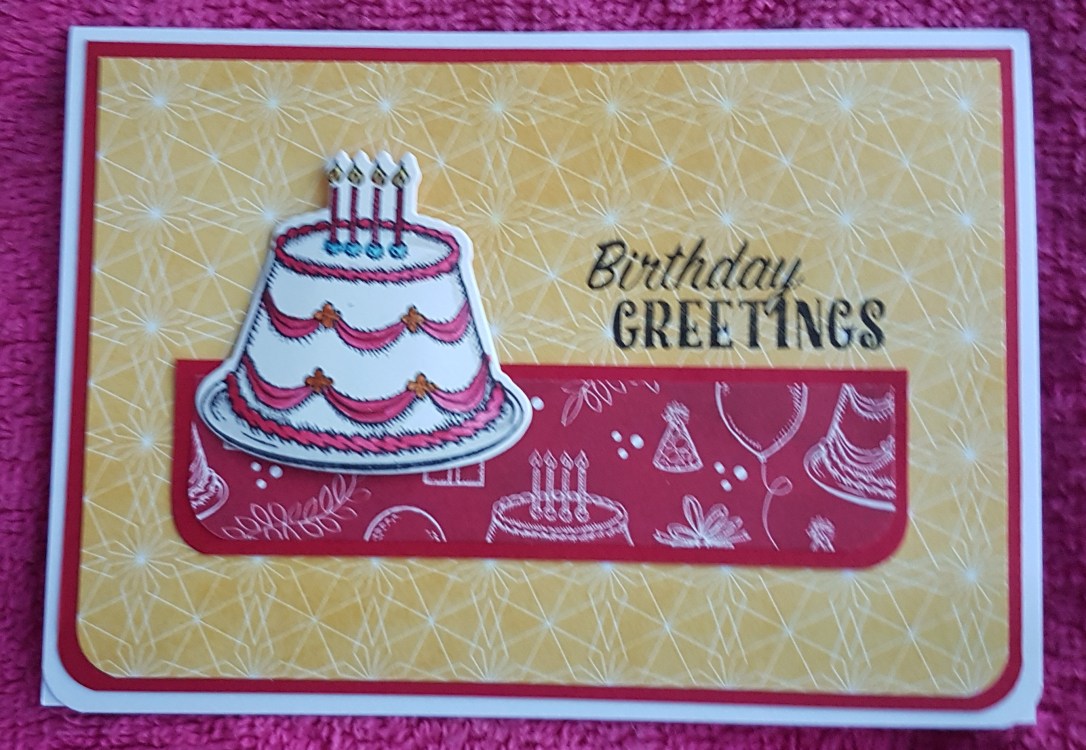 The set was made using the Birthday Delivery stamp set and some ink to watercolour. We then added some of the Birthday Memories designer series paper.
