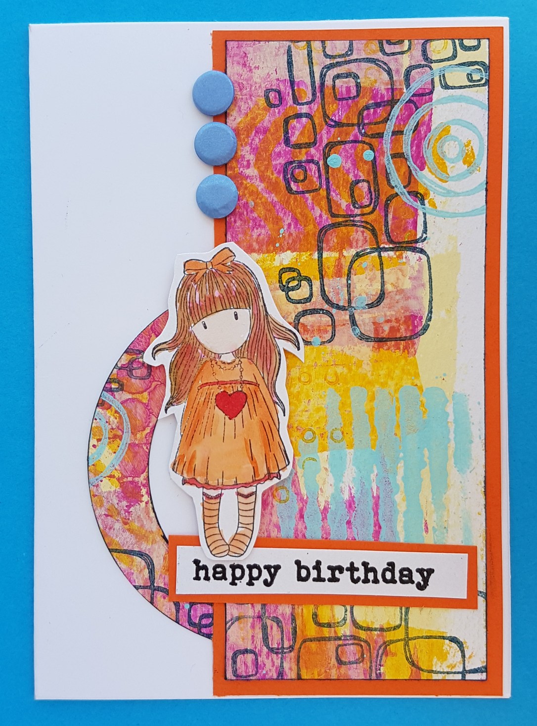 Card four uses the cut out from card three to add interest behind the Gorjuss Girl image.