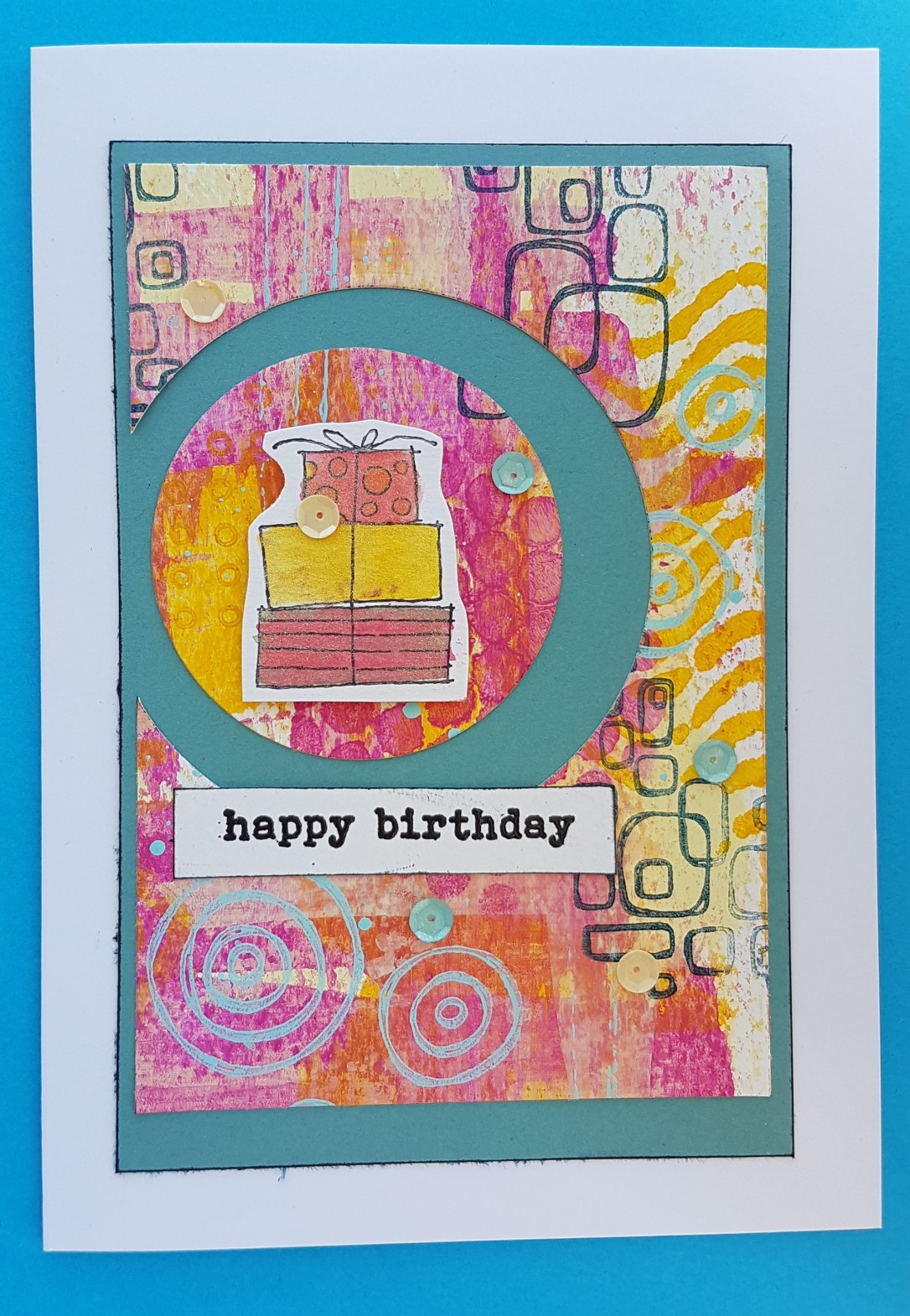 Card three I decided to jazz up the panel by die cutting a section out. I also added some shimmer ink on top of the watercoloured presents to add some additional shine.