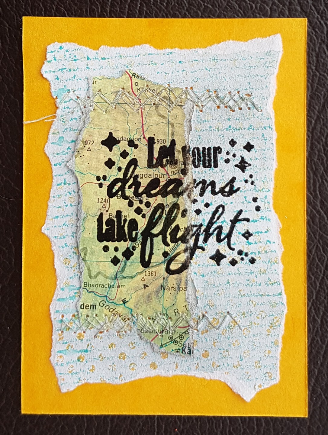 This time I added a torn piece of map paper and some machine sewing to add texture and some different effects.