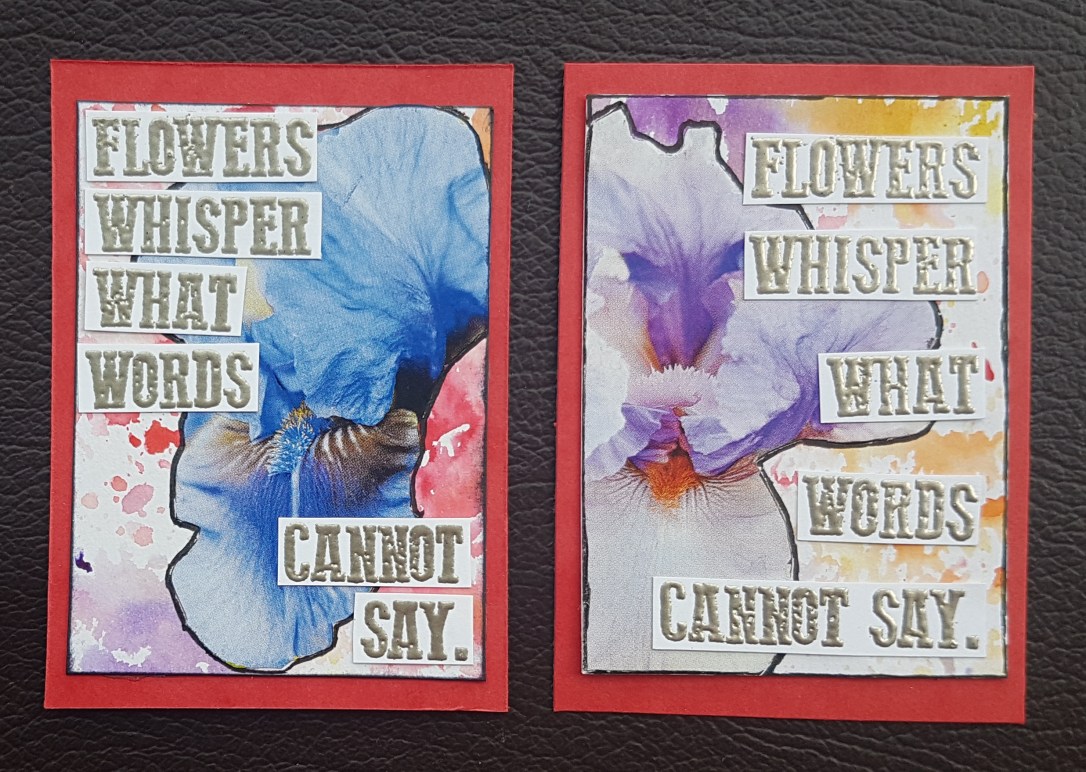 Both of these have a background of a few brusho colours where I just dipped the paper in and mopped up after another project. This gave them a loose and delicate watercolour appearance.