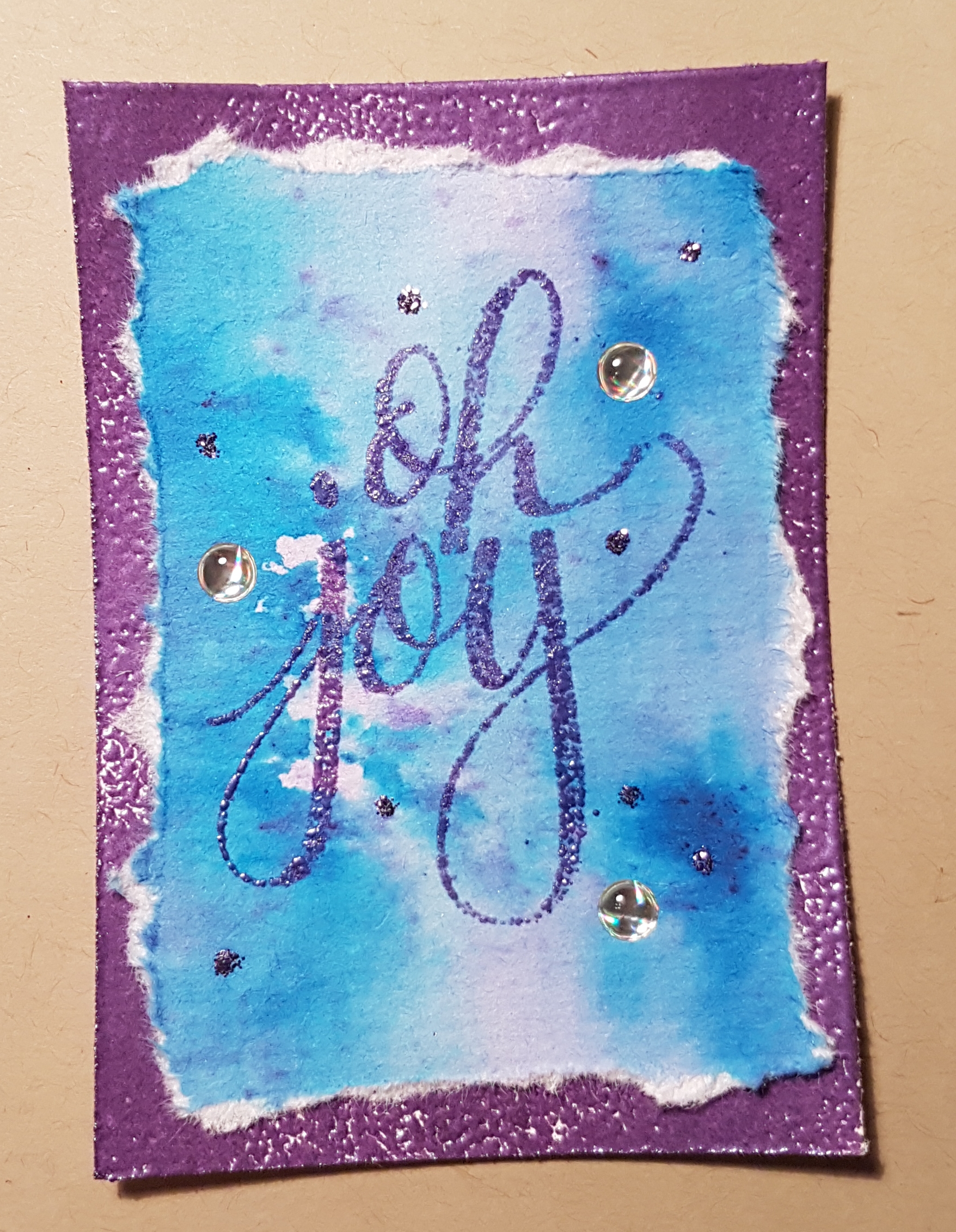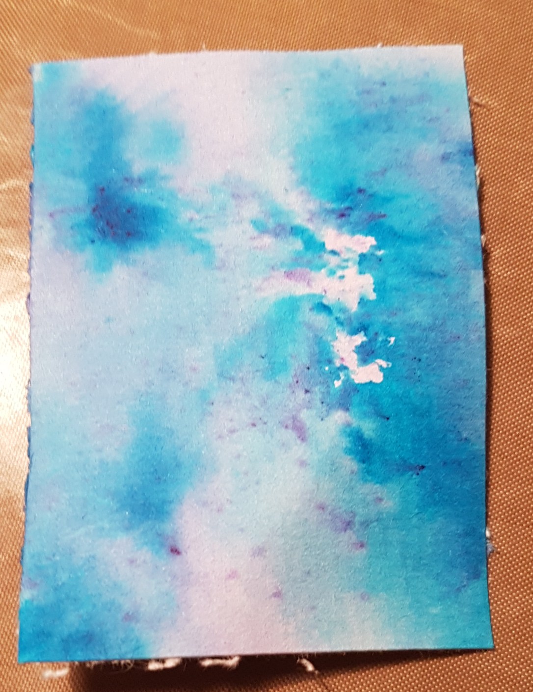 One more Brusho play atc to share with you today. I chose some cheap watercolour paper to work on and created this vibrant blue background.