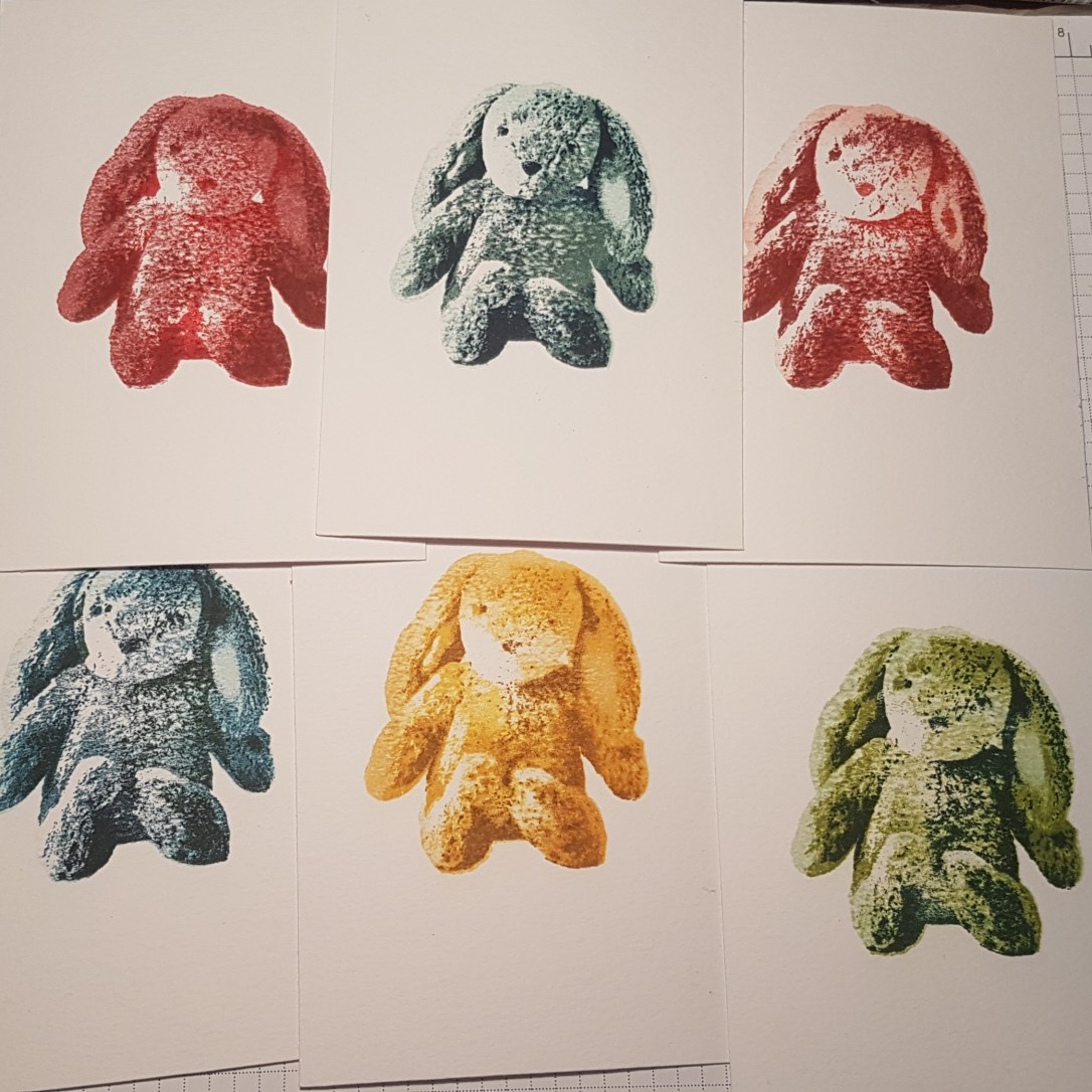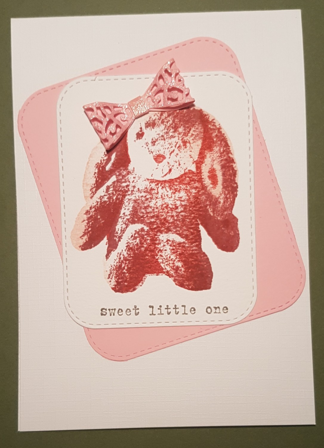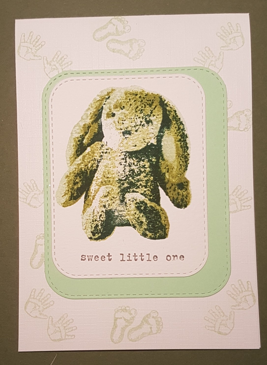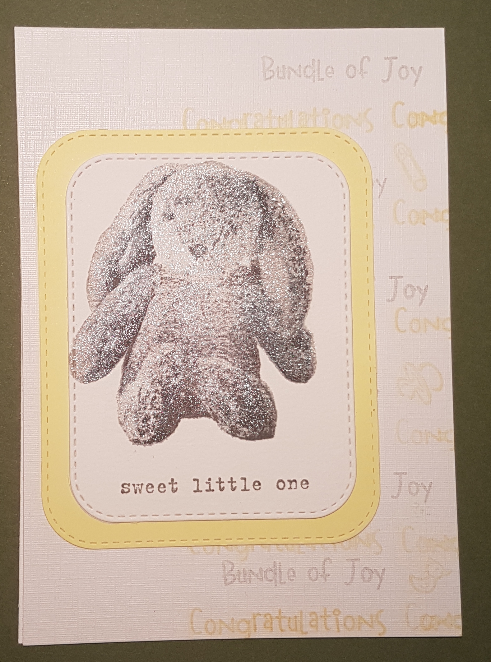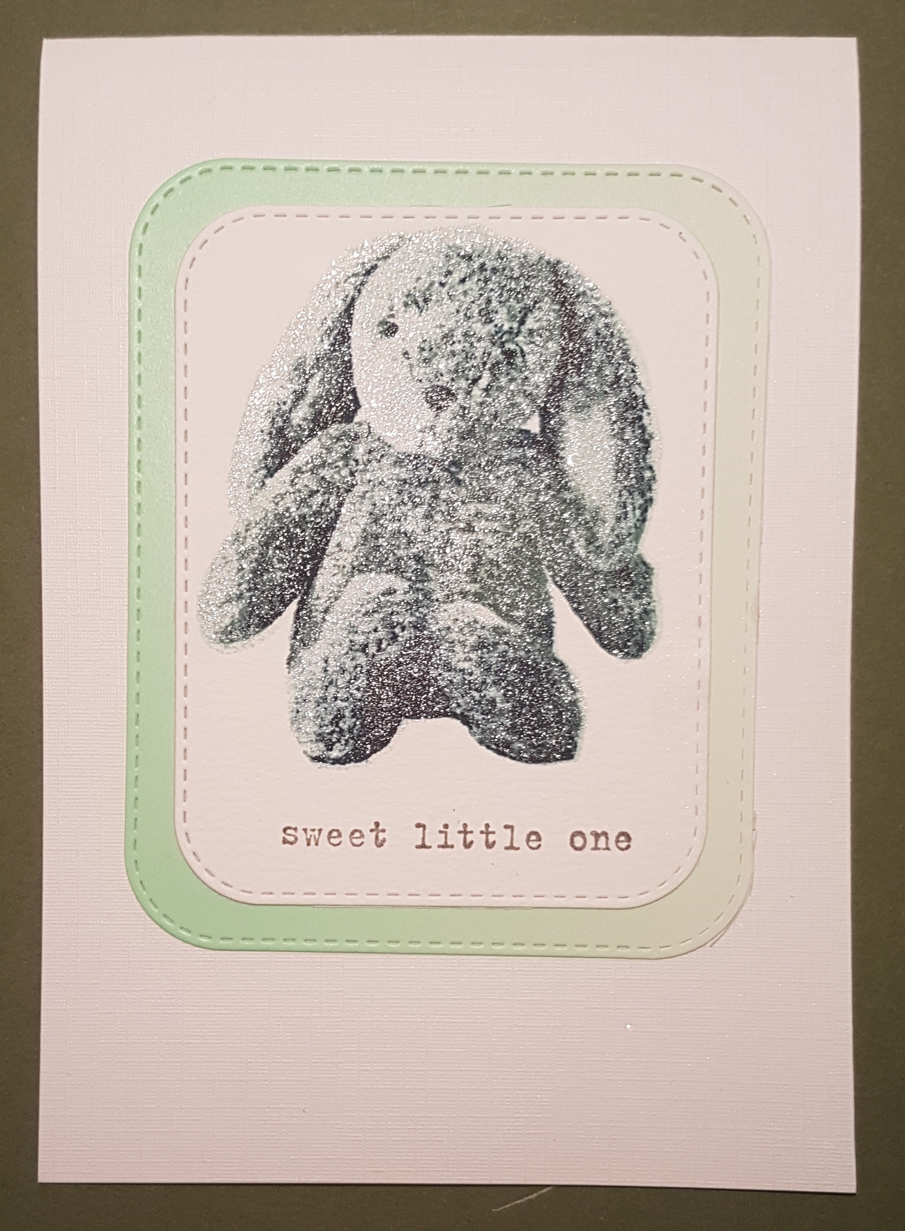 I spotted this cuddly rabbit layered stamping set in the new catalogue and knew I had to have it for making baby cards. So I had a play.