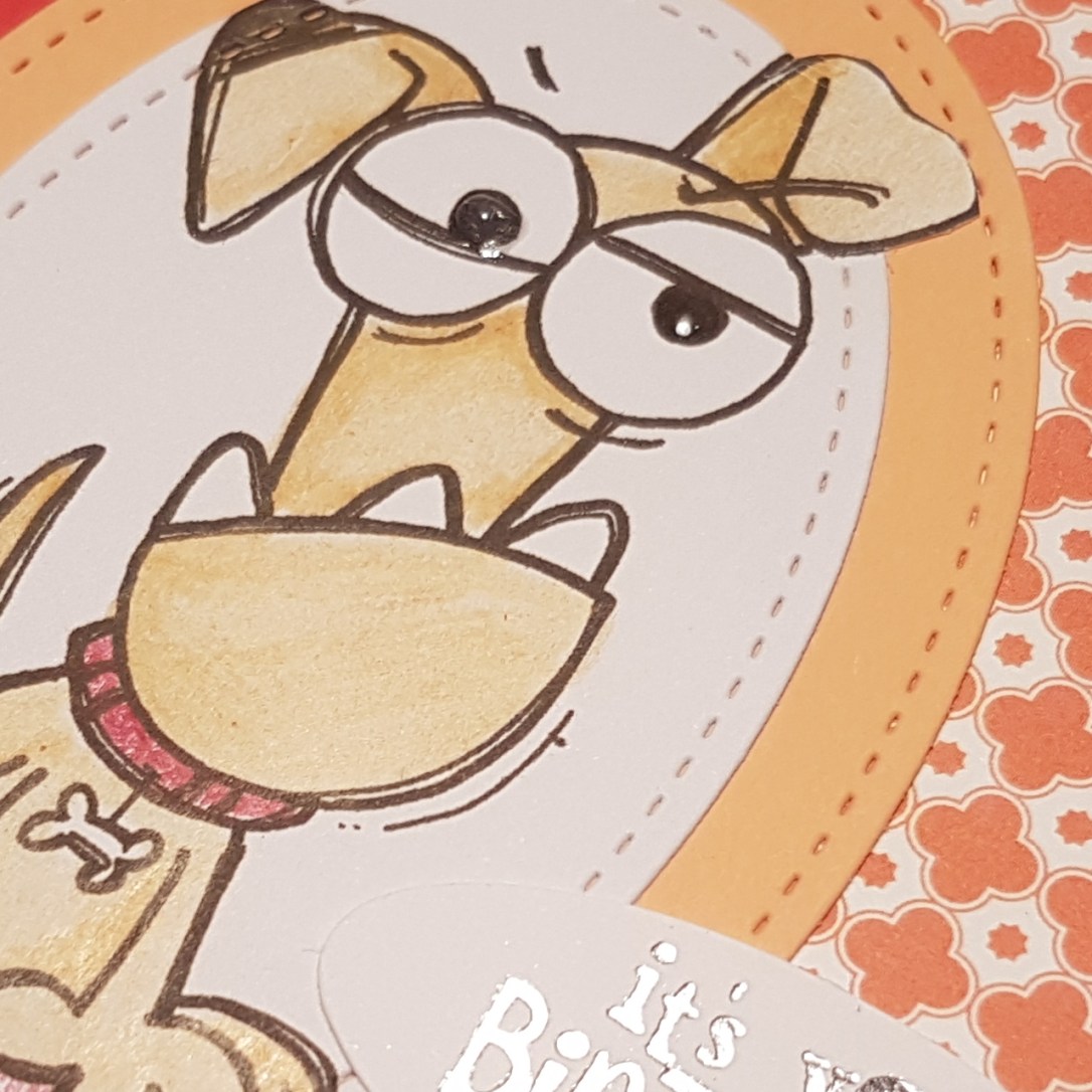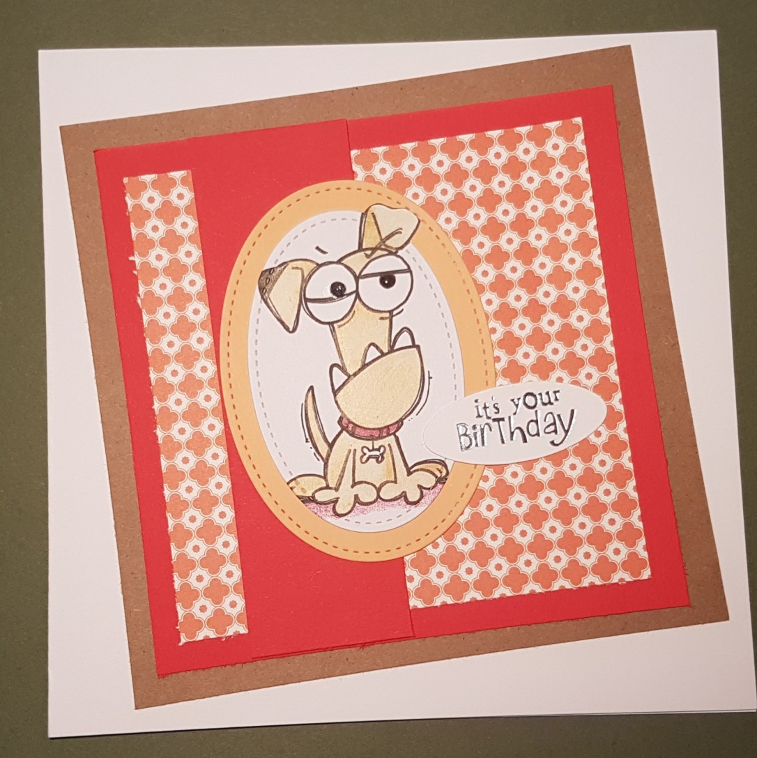 It was my brothers birthday a few days ago and I made this card for him. No idea why but the grumpy looking dog made me think of him! Ha Ha Ha!