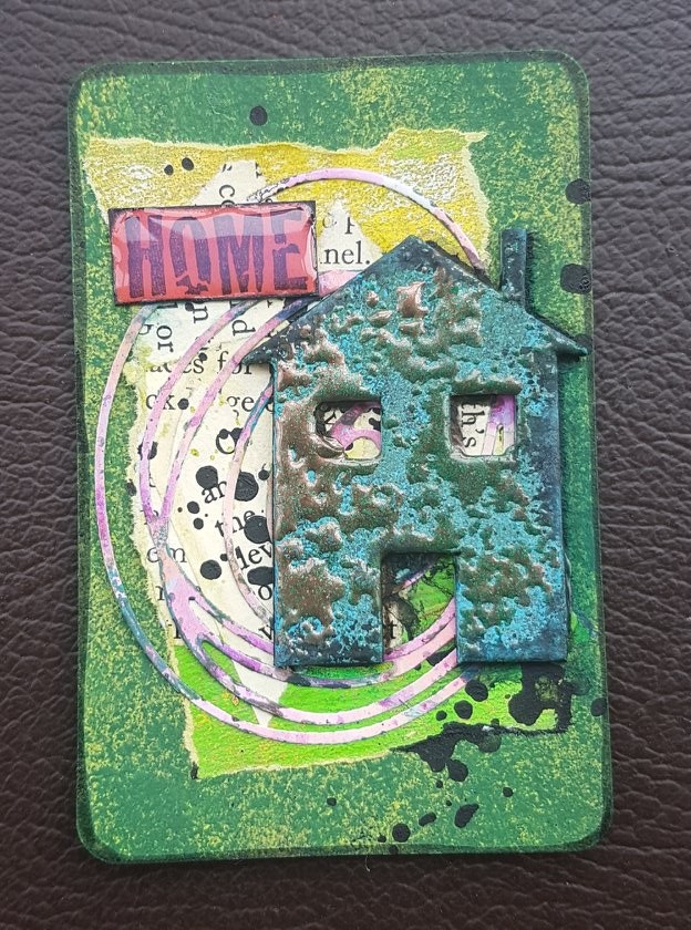 When I saw the challenge prompt this week I knew I was going to be using the chipboard shape I got off Hazel for her circle journal. So I grabbed some bits from the box and made this card …