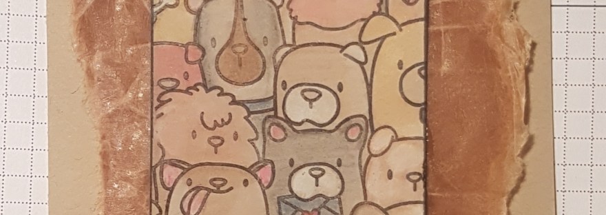 I recently had a bit of a splurge including buying these fabulous stamps from Mama Elephant that I have been NEEDING ever since I first saw them months ago. So this is my first play with the Dogs Woof stamp… and I created a thin panel by masking and stamping different parts on top of each other. I used the stamp platform to ensure I got good crisp images.