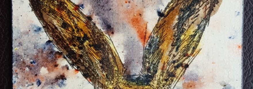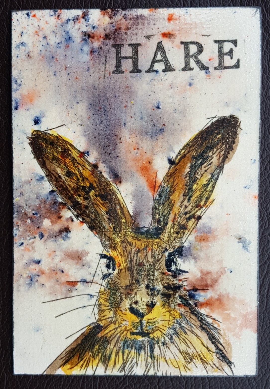 I added more orange tones to the hare itself and the background is the light brown brusho. I love this stamp and how easy it is to create some stunning artwork.