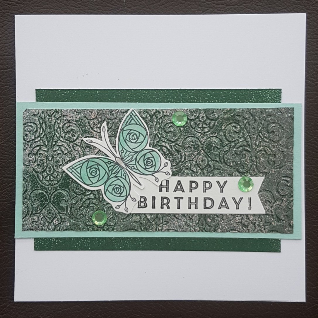 This final one I embossed the patterned paper, adding versamark to the folder first and then adding some jade coloured powder and heating it. This created a fabulous texture.