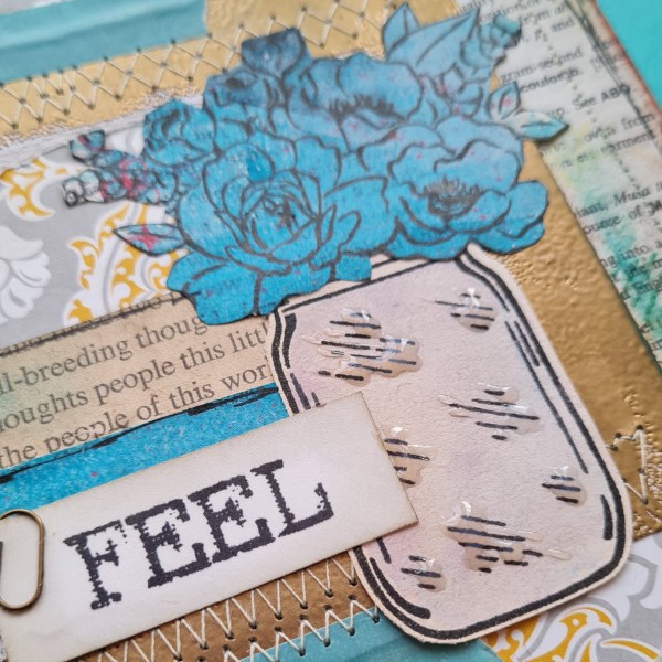 I also added lots of other stuff from the junk journal box, including gelli prints, book print and played with plenty of fun mediums like paint and distress crayons.