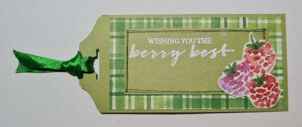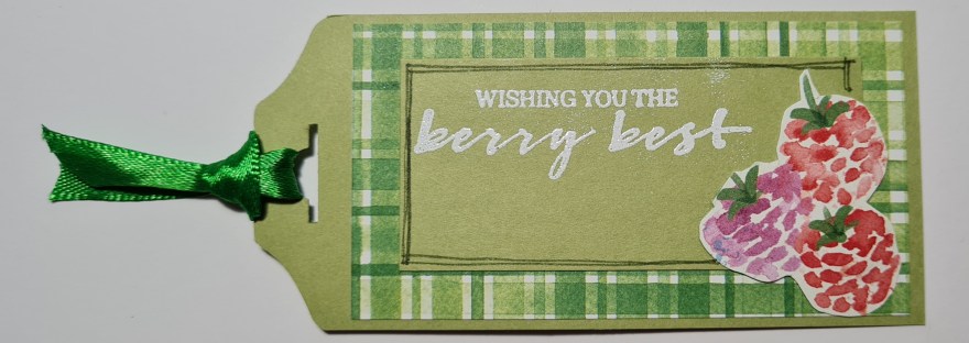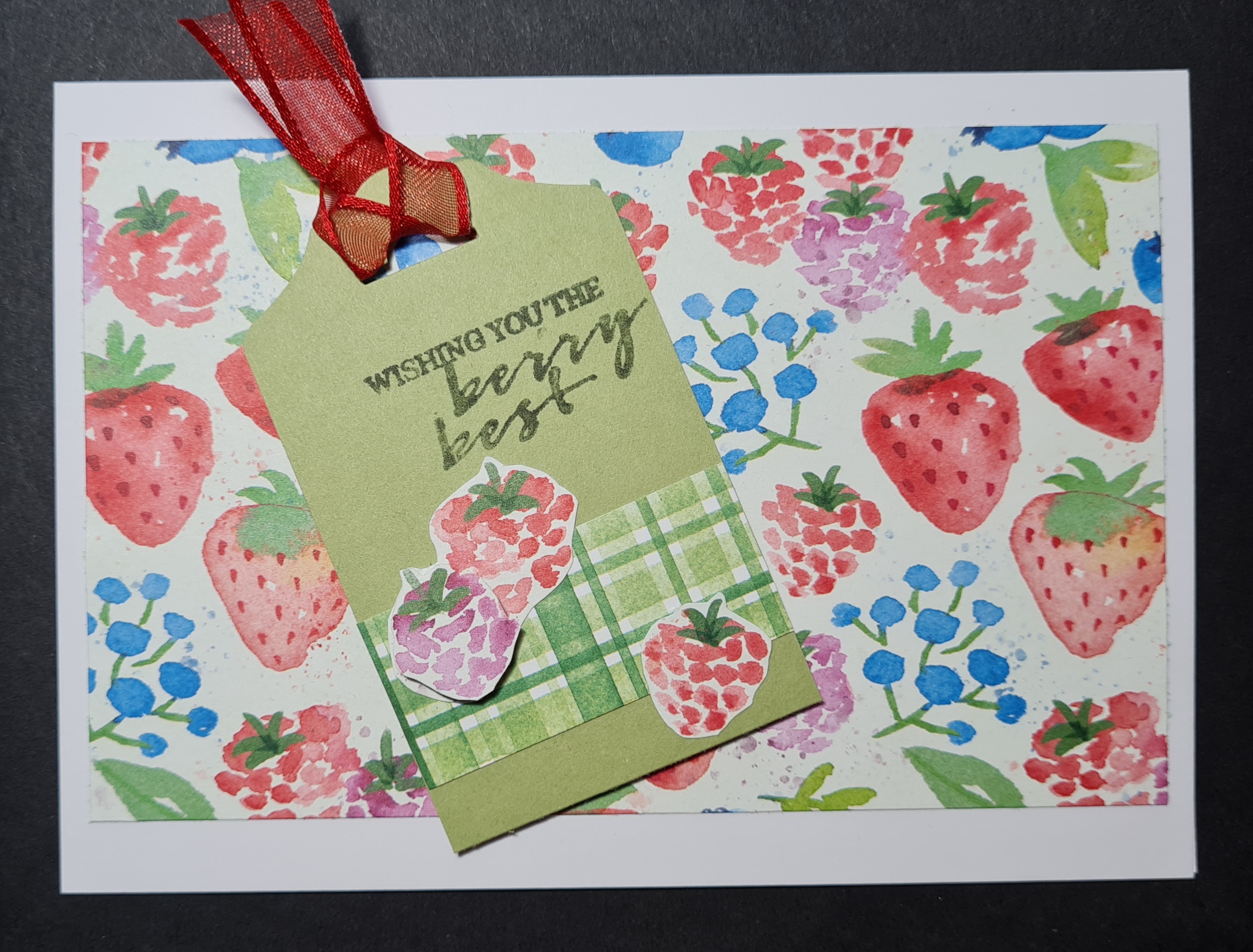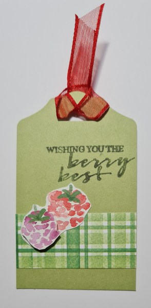 I started with this little tag and a scrap of the dsp with a bit of fussy cutting and layering (the bottom berry is layered up with a dimensional.