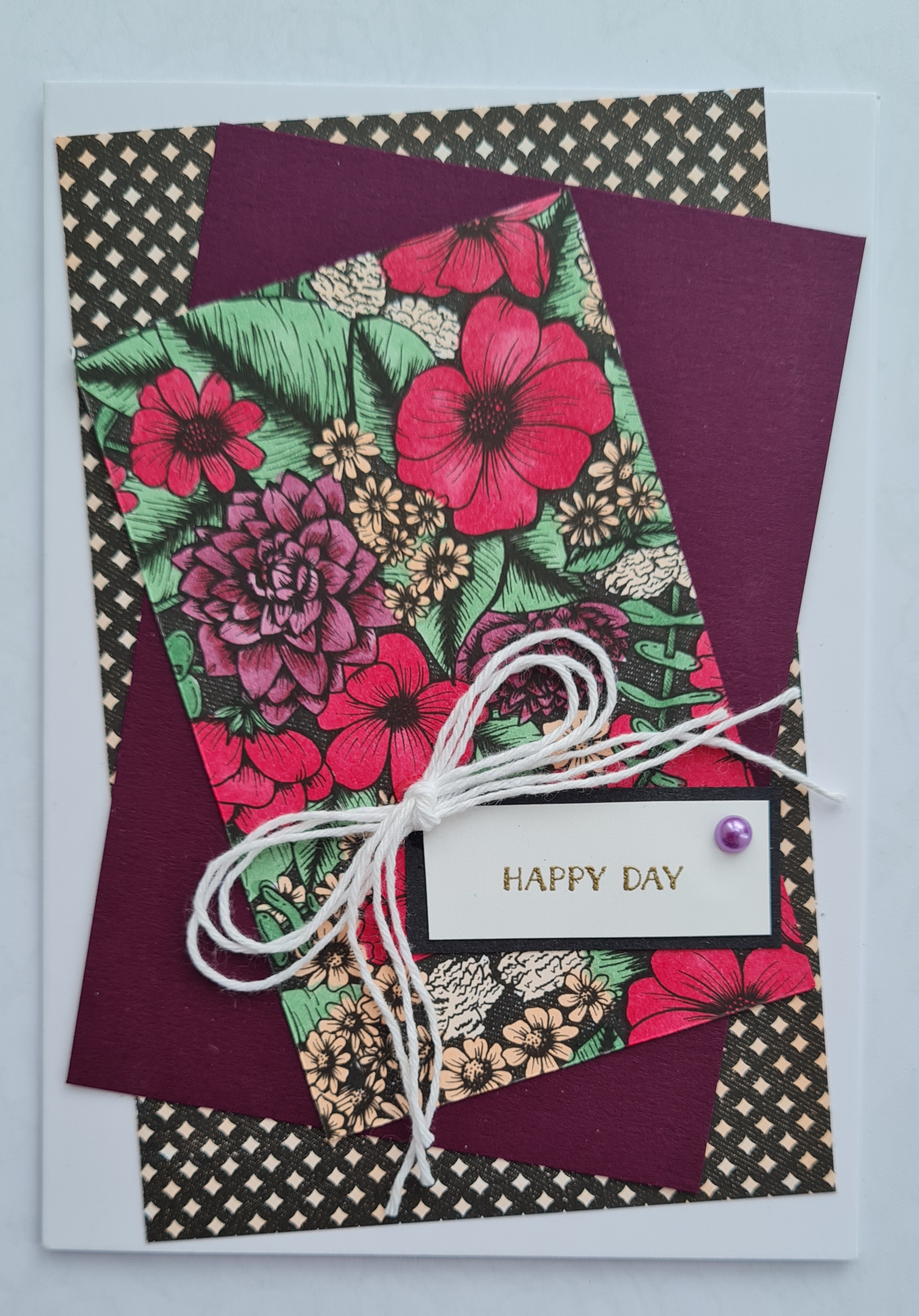 This time some simple white twine and a single pastel pearl did the job to finish off. This is a very different card… but fabulous in its own right!