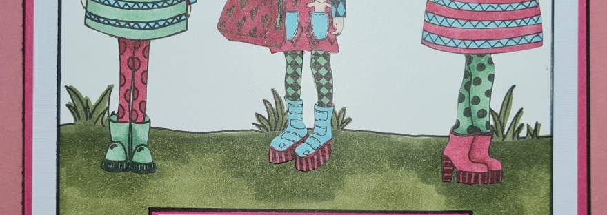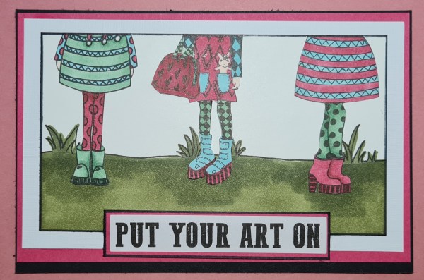 The theme for this months postcard art swap was boots and shoes so I went a bit crazy with three Dylusions dies cuts, promarkers and Stampin Blends to create mine.