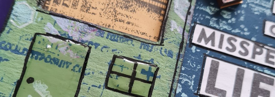 I decided for the hole in the house to add some bookprint onto which I had stamped the paperartsy stamp.