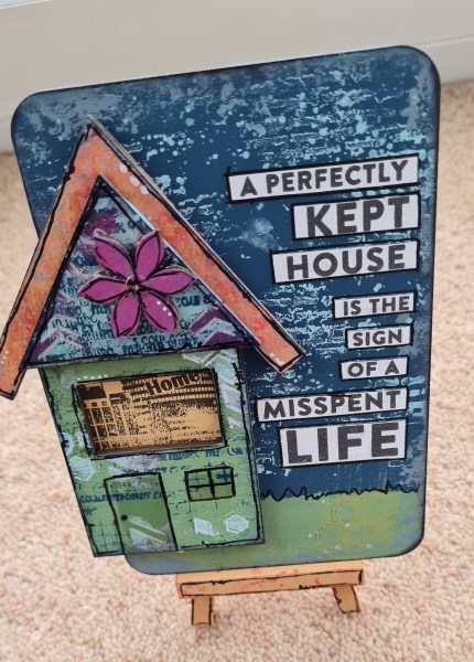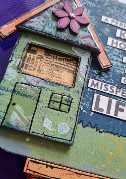 Well this particular Monday I am sharing a mixed media piece I made for the Mini Marvels house themed swap. I already made a couple of houses but then volunteered myself to make another project for a different recipient. This is what I made!