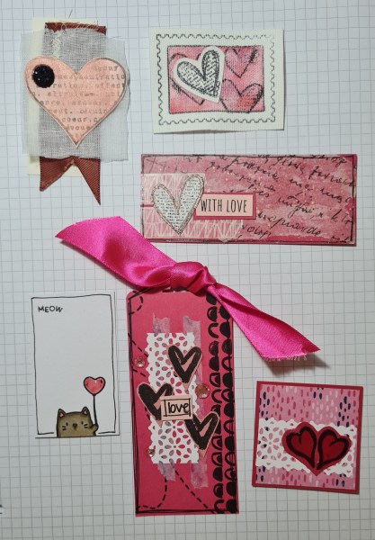 Another swap with hearts! This time I had to make six embellishments for the recipient to use either in a journal or on a card etc.