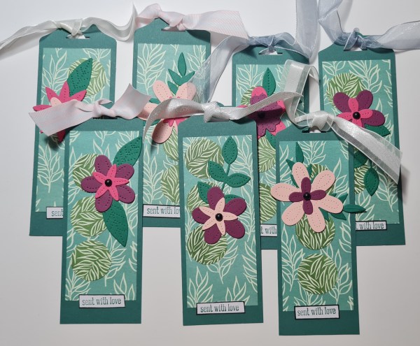 Then I went through the ribbon stash to find bits that worked with the colours in the tags.