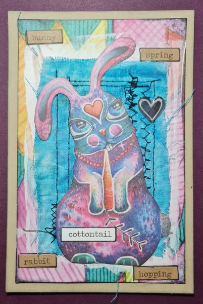 Today I have the rabbit themed postcard I made at the weekend for the Facebook postcard art swap. Love how it came out.